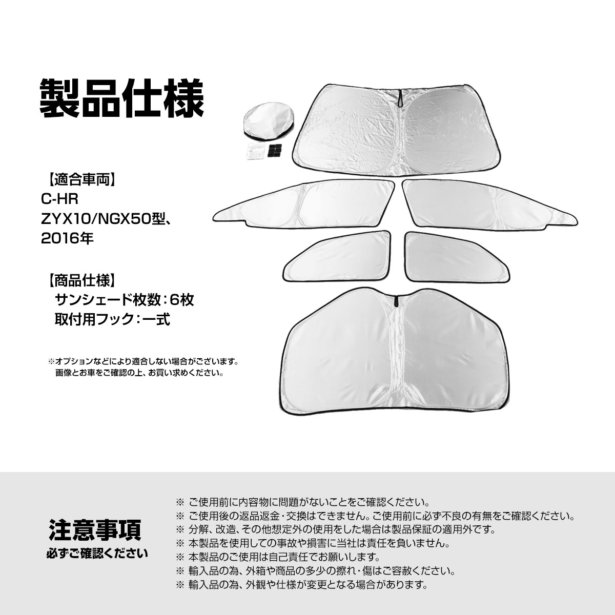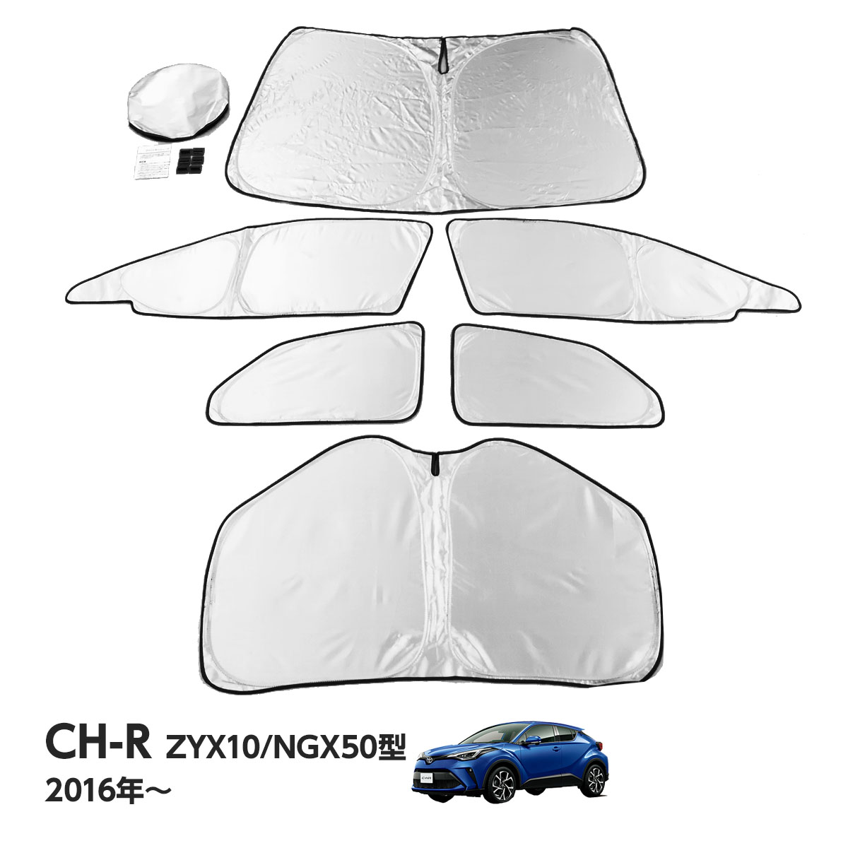 クイックサンシェード ワンタッチ サンシェード C-HR ZYX10 NGX50 マルチサンシェード 6枚set カーテン 遮光 日除け 車中泊 キャンプ 保温