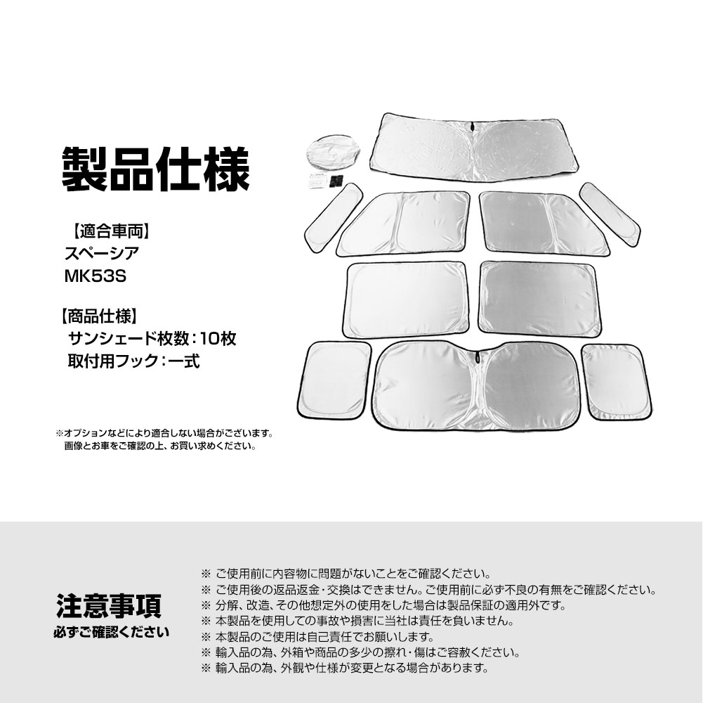 クイックサンシェード ワンタッチ サンシェード スペーシア MK53S マルチサンシェード 10枚 カーテン 遮光 日除け 車中泊 キャンプ 保温