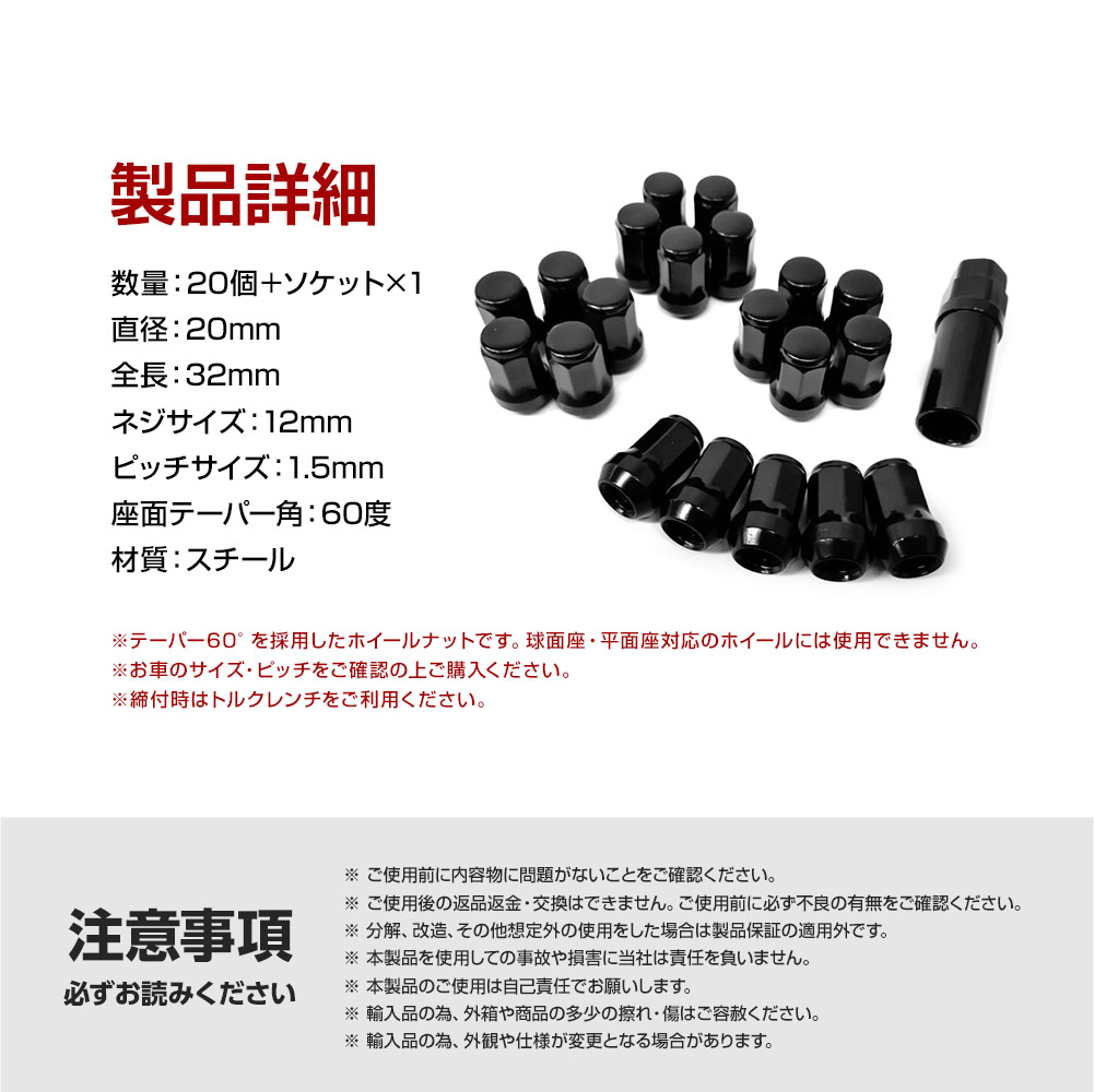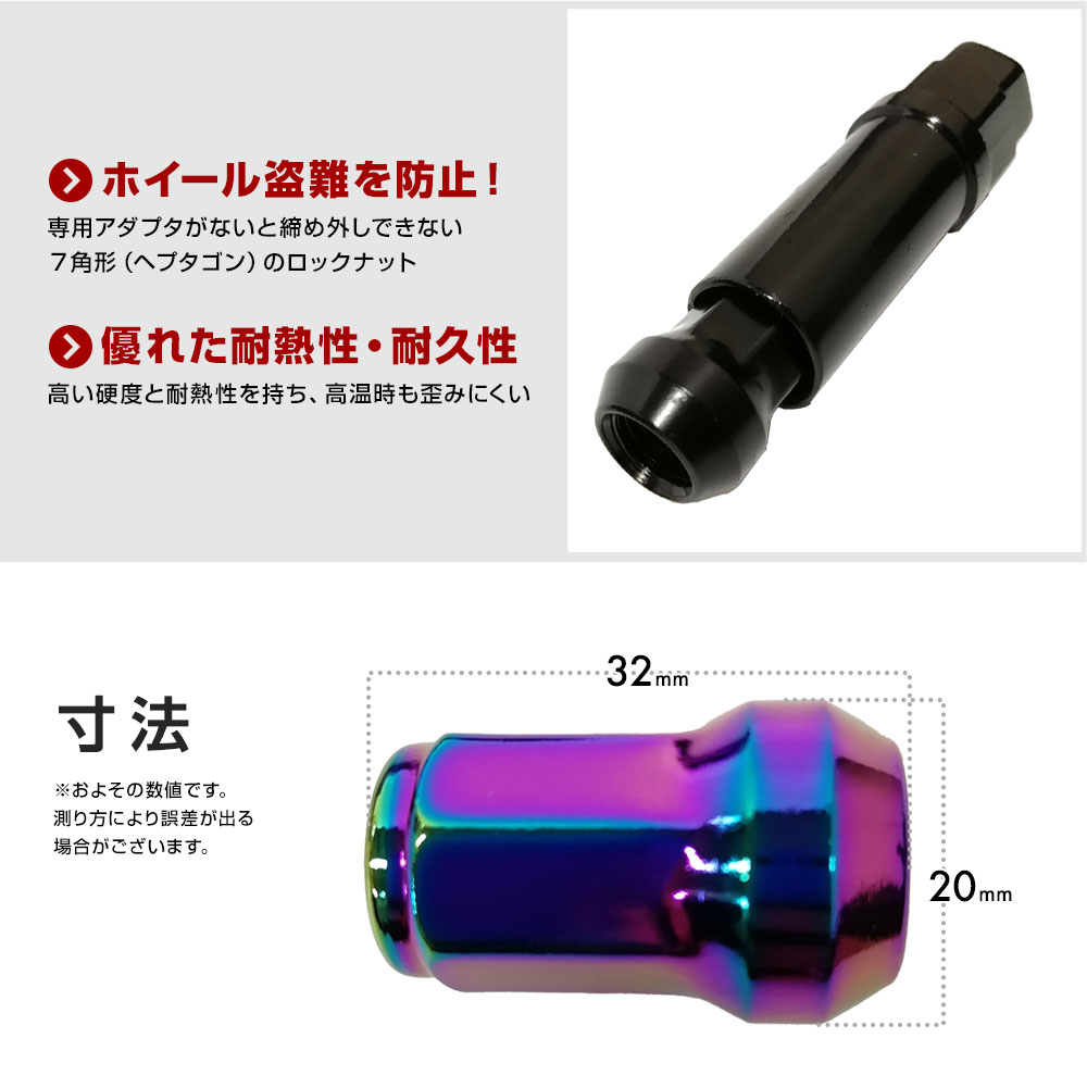 ヘプタゴンナット ホイールナット ホイルナット ロックナット スチール ナット 32mm 20個+ソケット ラグナット M12 × P1.5 ブラック
