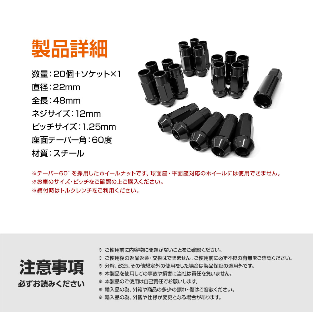 ヘキサゴンナット ホイールナット ホイルナット ロックナット スチール ナット 48mm 20個+ソケットセット M12 × P1.25 ブラック