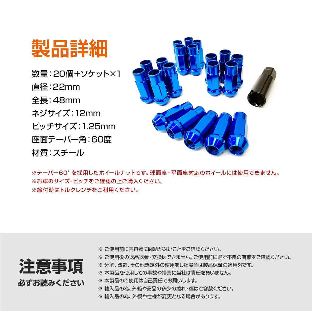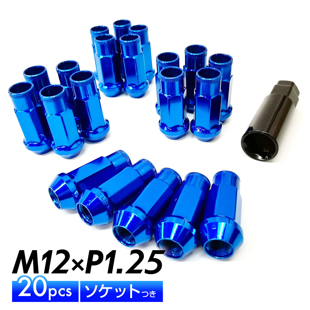 ヘキサゴンナット ホイールナット ホイルナット ロックナット スチール ナット 48mm 20個+ソケットセット M12 × P1.25 ブルー