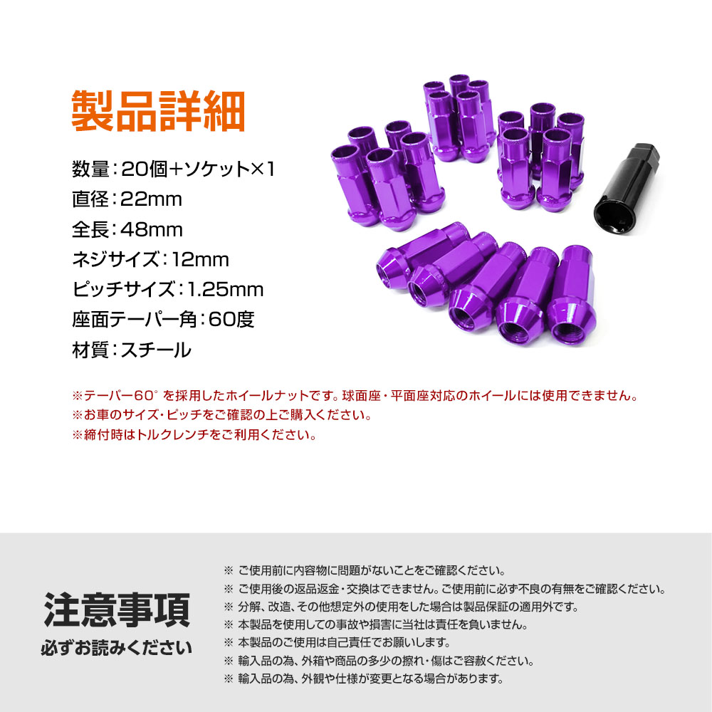 ヘキサゴンナット ホイールナット ホイルナット ロックナット スチール ナット 48mm 20個+ソケットセット M12 × P1.25 パープル