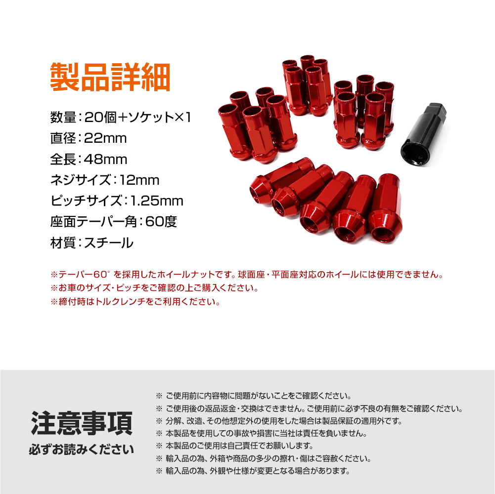 ヘキサゴンナット ホイールナット ホイルナット ロックナット スチール ナット 48mm 20個+ソケットセット M12 × P1.25 レッド