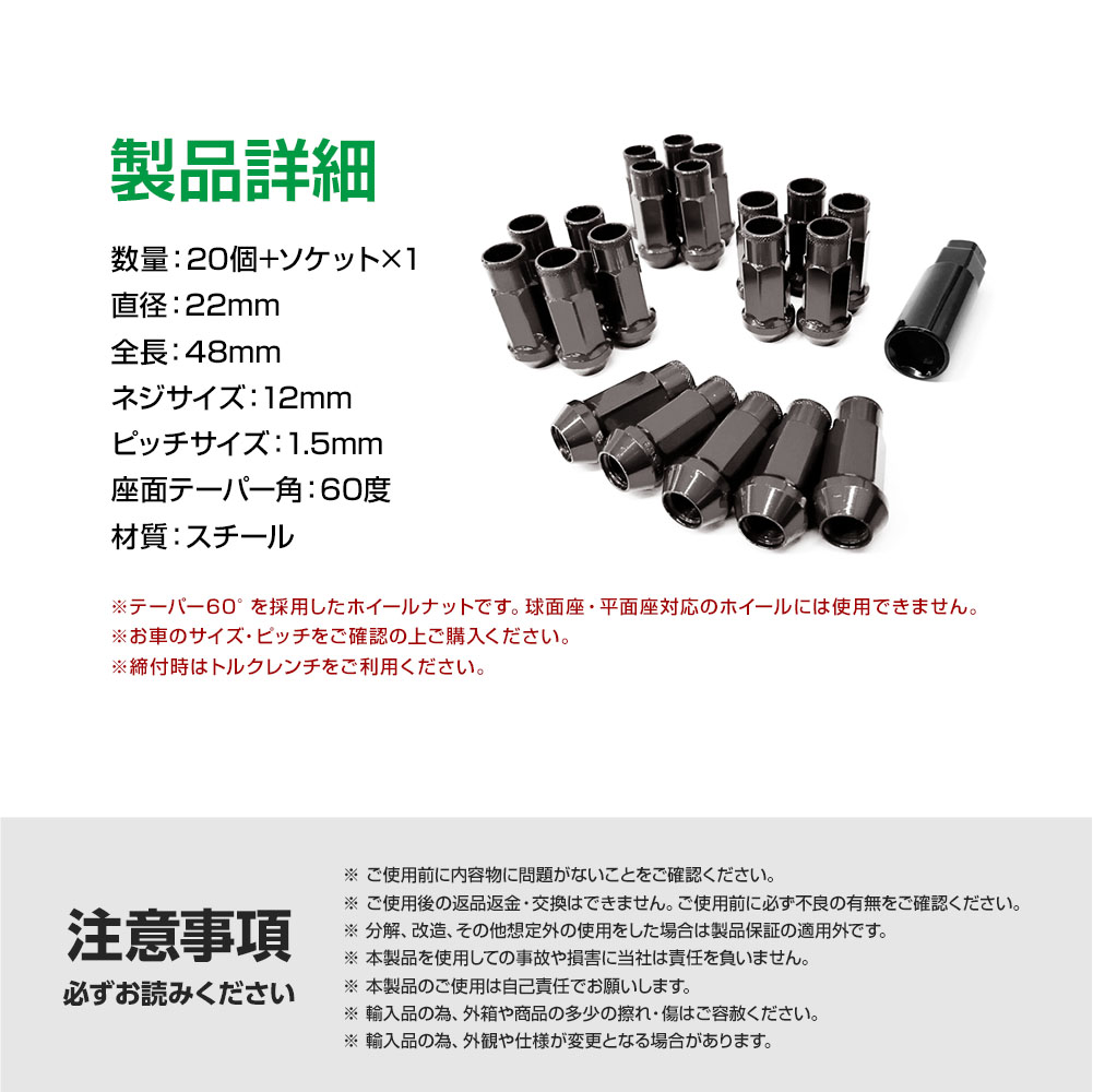 ヘキサゴンナット ホイールナット ホイルナット ロックナット スチール ナット 48mm 20個+ソケットセット M12 × P1.5 グレー