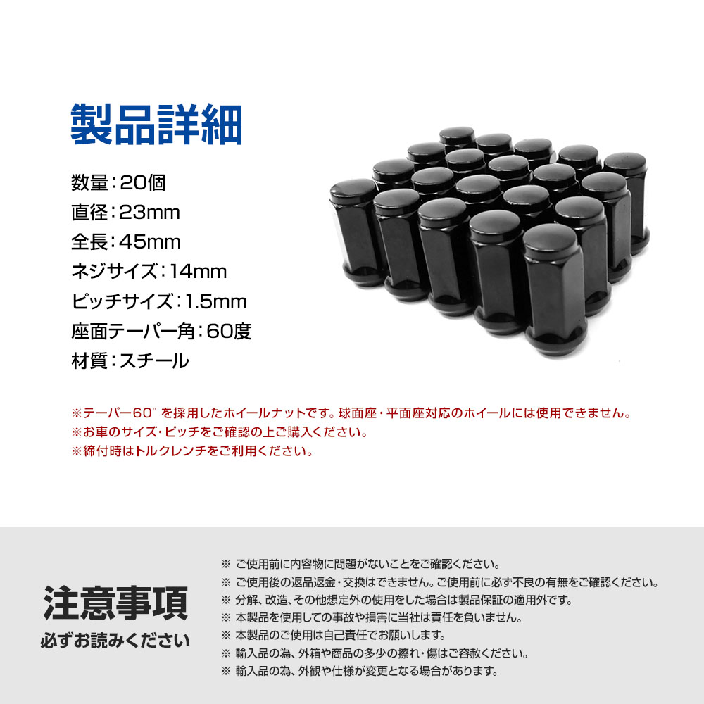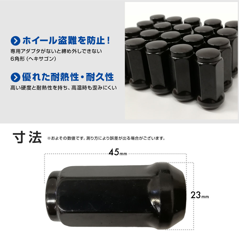 ヘキサゴンナット ホイールナット ホイルナット ロックナット スチール ナット 45mm 20個 セット M14 × P1.5 ブラック