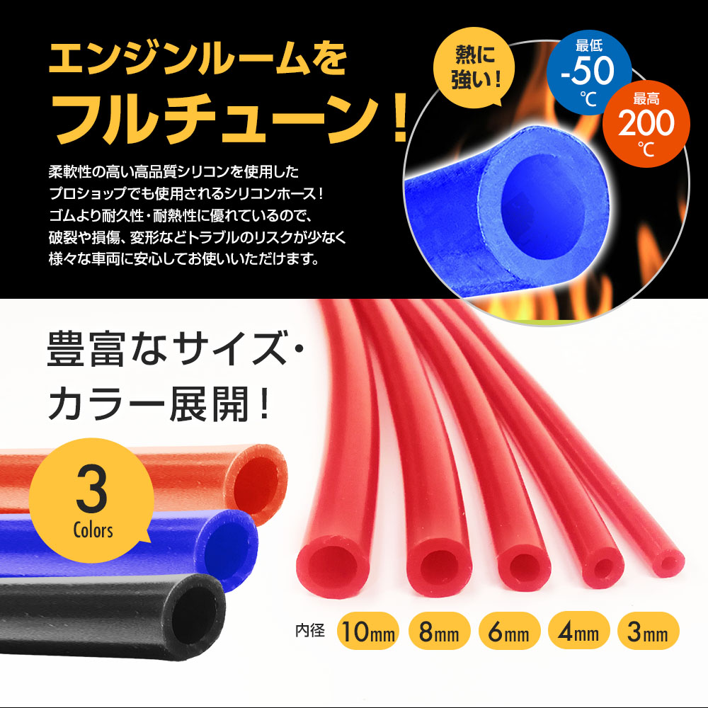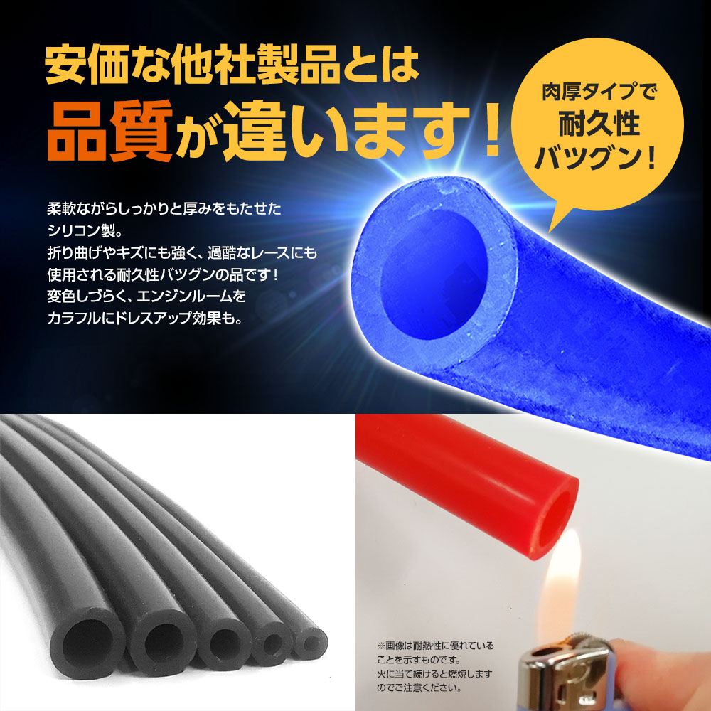 白化や硬化せず、柔軟性の高い100%シリコンを使用したプロショップでも使用されている高品質シリコンホース!
