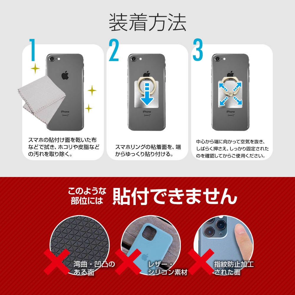 ※背面が平らなケース・端末にご使用ください。特殊な加工が施された素材等、一部貼り付きにくい場合がございます。