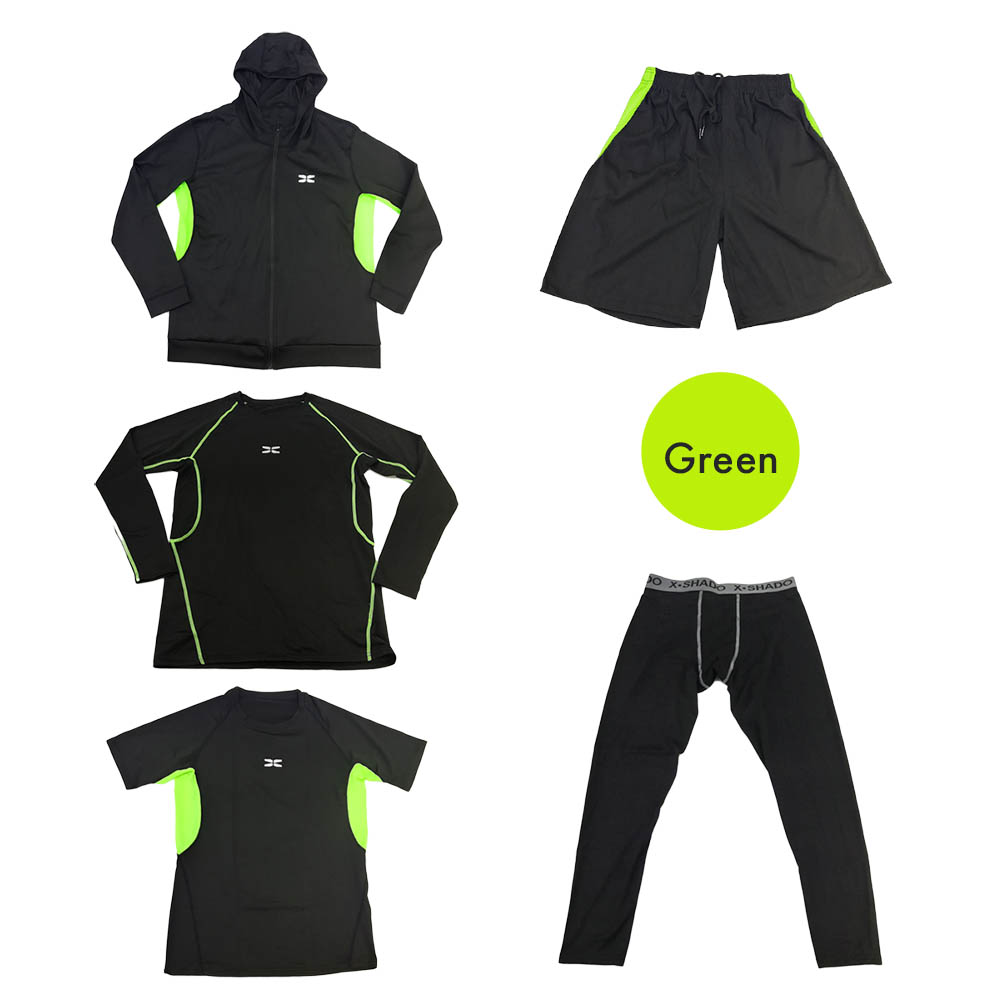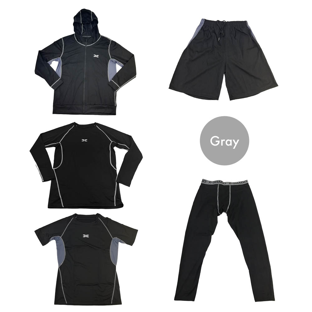 • スポーツウェア 5点セット コンプレッションウェア ジム ランニングウェア トレーニングウェア 上下 パーカー ショートパンツ レギンス