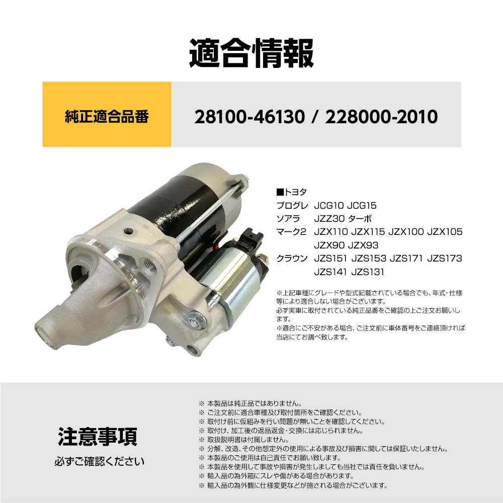 スターターモーター セルモーター トヨタ マーク2 JZX110 JZX115 JZX100 JZX105 JZX90 JZX93 228000-2010 28100-46130