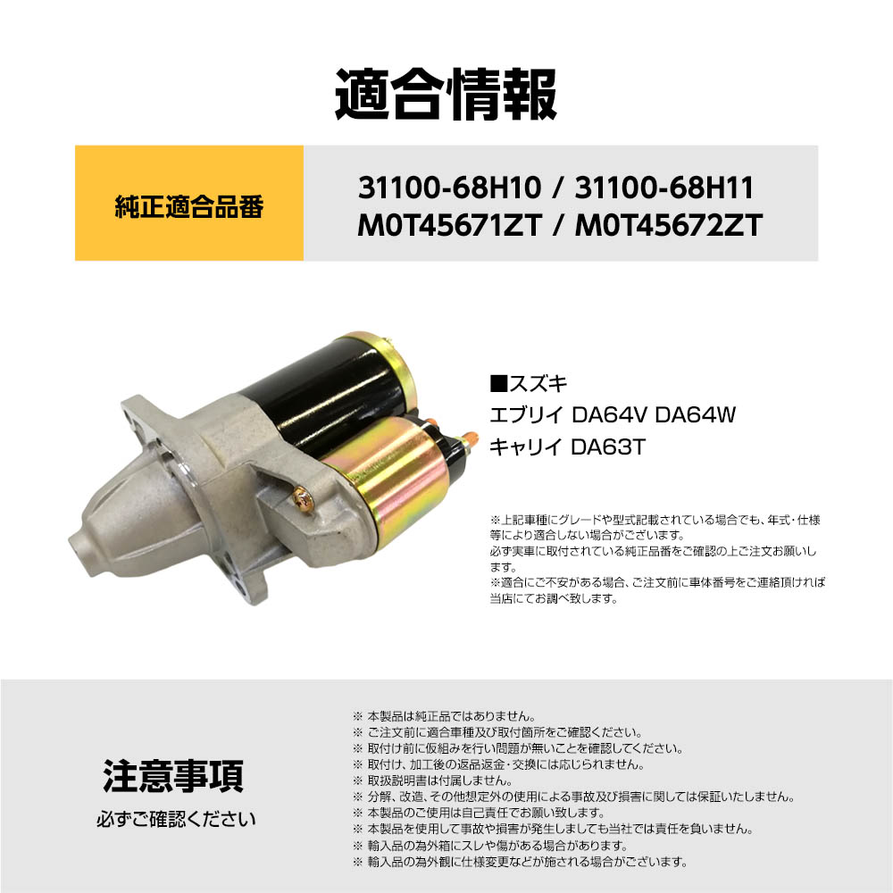 スターターモーター セルモーター スズキ エブリイ DA64V DA64W キャリイ DA63T 31100-68H11 M0T45671ZT M0T45672ZT 31100-68H10