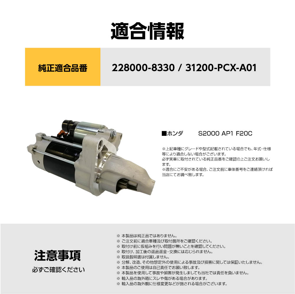 スターターモーター セルモーター ホンダ S2000 AP1 F20C 228000-8330 31200-PCX-A01