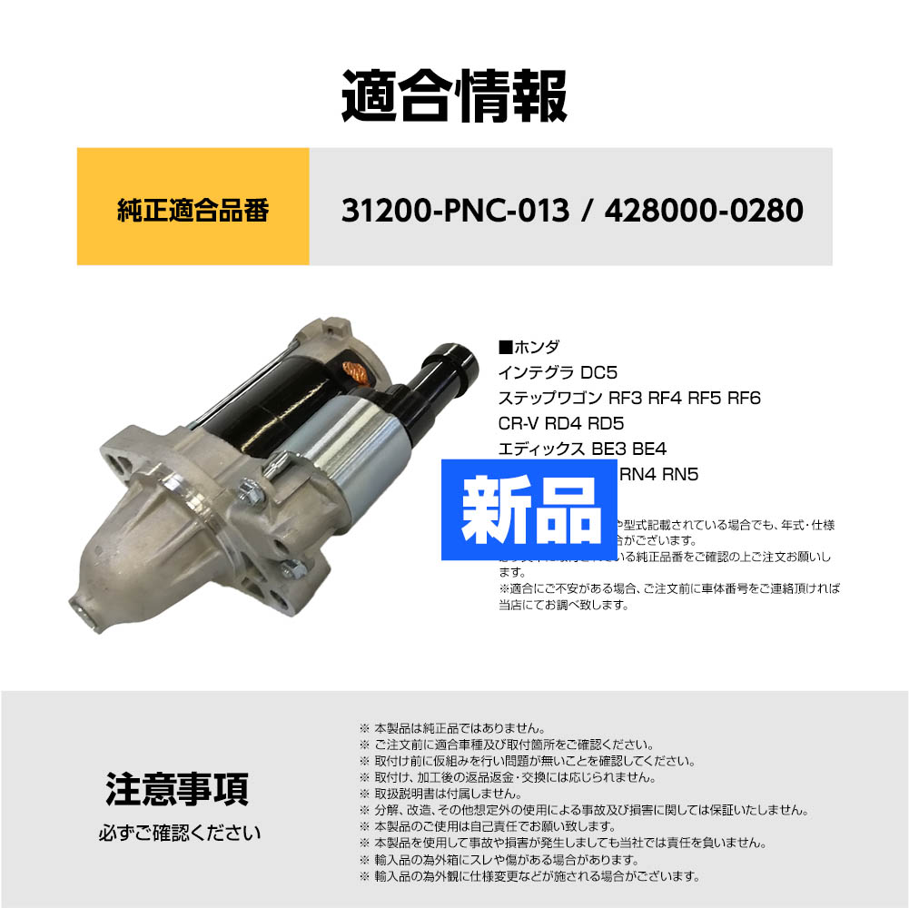 スターターモーター セルモーター ホンダ ステップワゴン RF3 RF4 RF5 RF6 428000-0280 31200-PNC-013