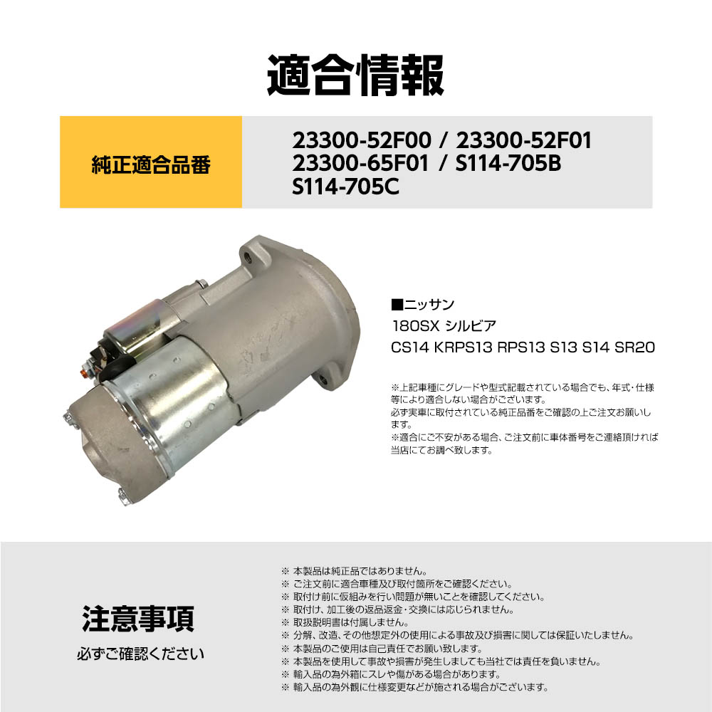 スターターモーター セルモーター 日産 180SX シルビア CS14 KRPS13 RPS13 S13 S14 SR20 23300-52F01 23300-65F01 S114-705B 23300-52F00