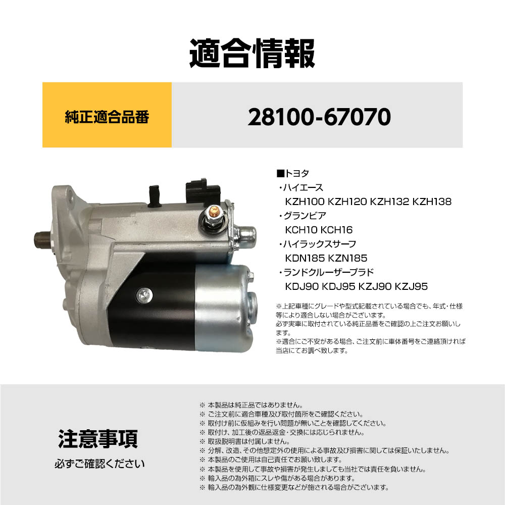 スターターモーター セルモーター トヨタ ハイエース KZH100 KZH120 KZH132 KZH138 228000-5341 28100-67070