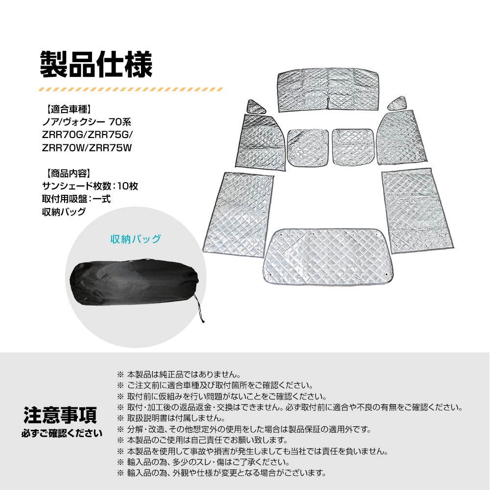サンシェード ノア ヴォクシー 70系 ZRR70G ZRR75G ZRR70W ZRR75W ボクシー マルチサンシェード 10枚 カーテン 遮光 日除け 車中泊 5層
