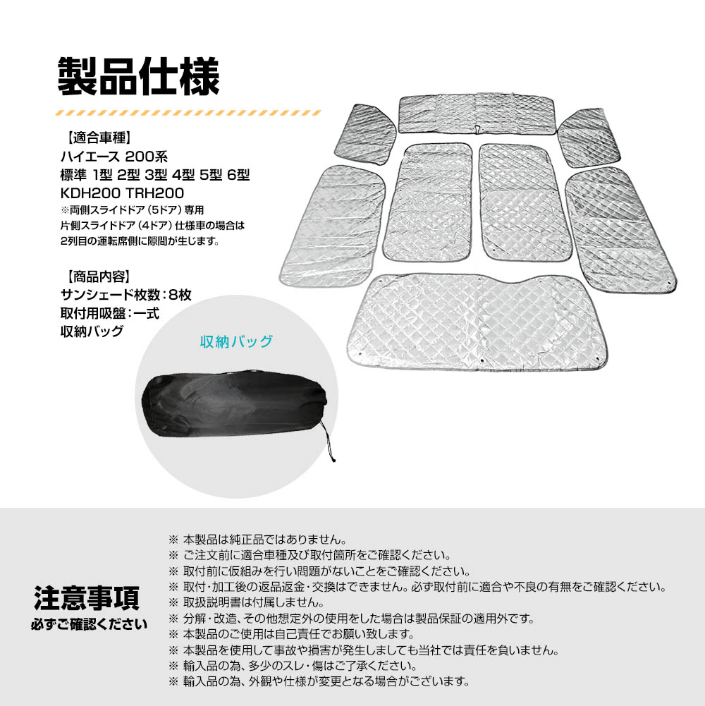 • 専用 サンシェード ハイエース 200系 標準 1型 - 6型 マルチサンシェード 8枚 カーテン 遮光 日除け 車中泊 アウトドア 5層構造