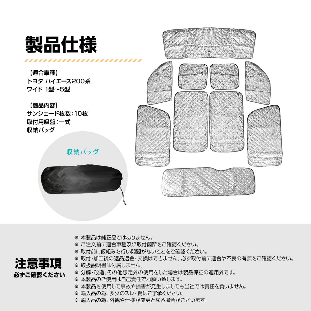 専用 サンシェード ハイエース 200系 ワイド用 1型 5型 マルチサンシェード 10枚set 一台分 カーテン 遮光 日除け 車中泊 アウトドア 5層