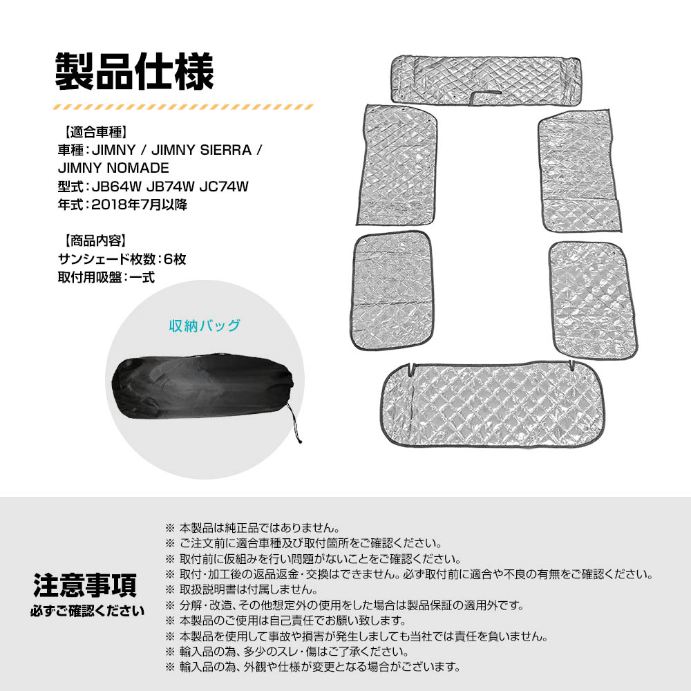 専用 サンシェード ジムニー JB64W シエラ JB74W マルチサンシェード 6枚set 一台分 カーテン 遮光 日除け 車中泊 アウトドア 5層構造