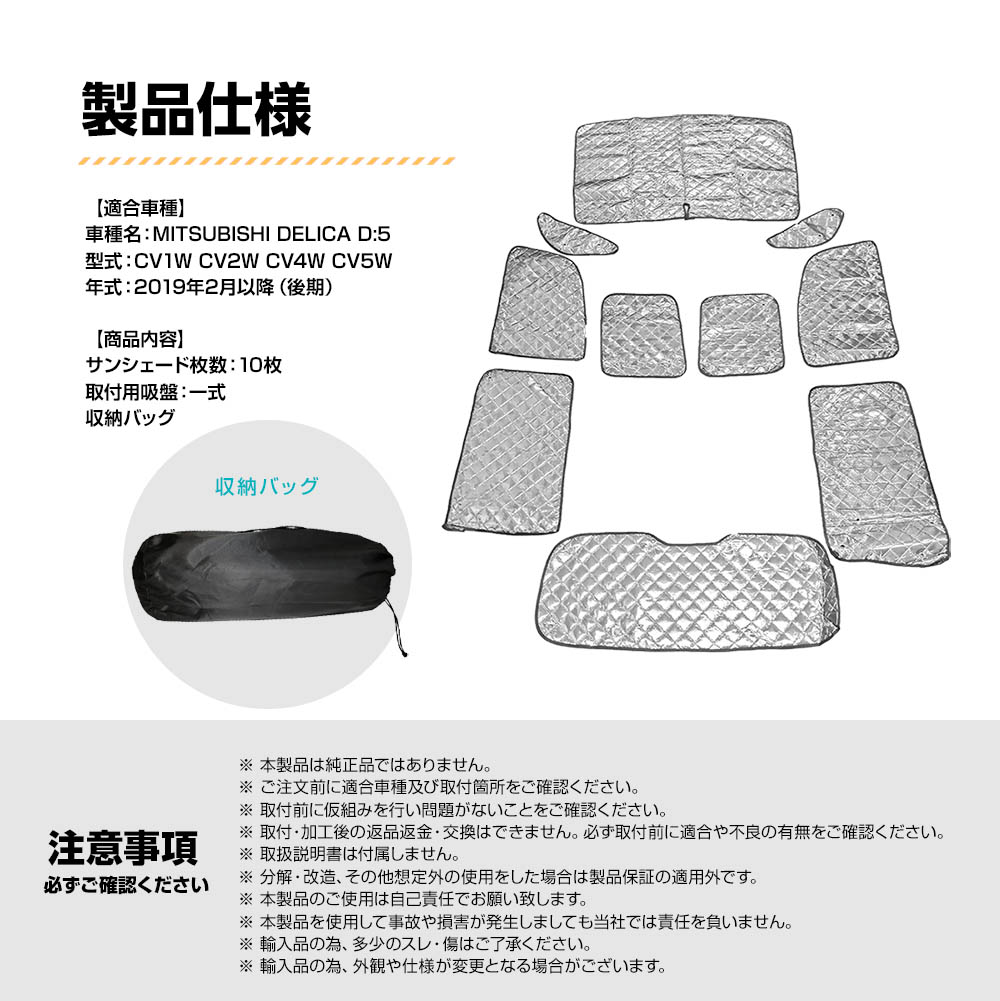 専用 サンシェード デリカ D:5 D5 マルチサンシェード 10枚set 一台分 カーテン 遮光 日除け 車中泊 アウトドア キャンプ 5層構造