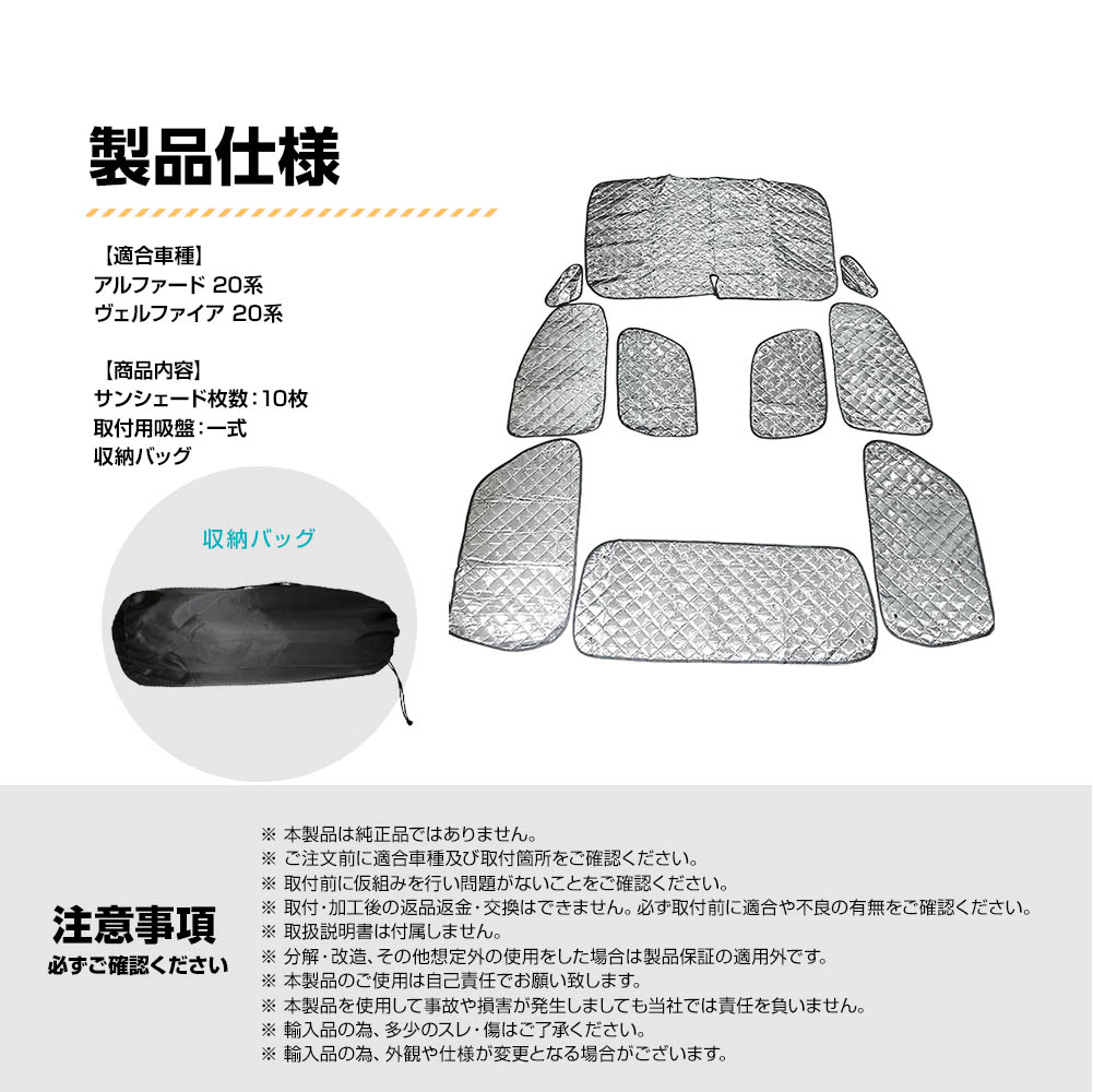 専用 サンシェード アルファード ヴェルファイア 20系 ANH20 GGH20 マルチサンシェード 10枚 一台分 カーテン 遮光 日除け 車中泊 5層