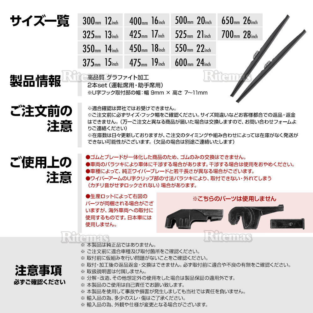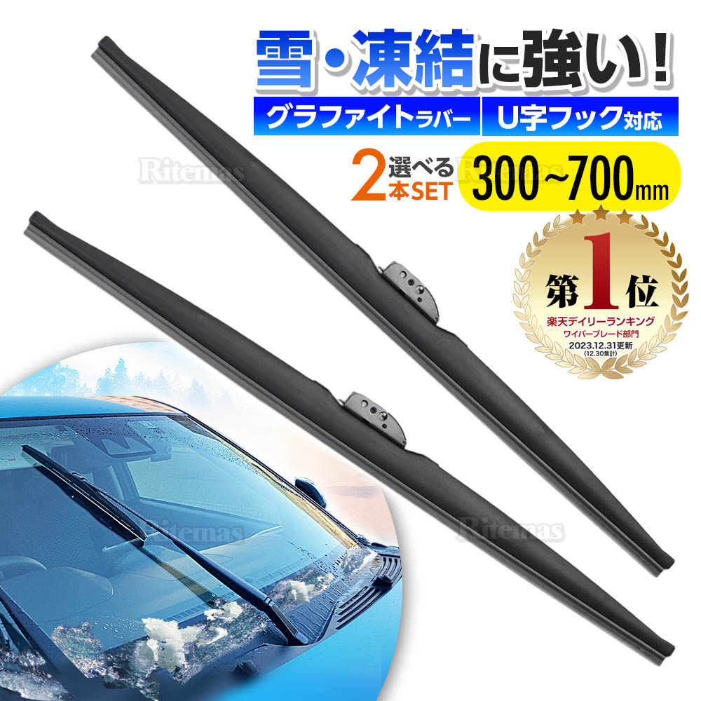 • 2本set スノーワイパー 雪用ワイパー 選べる 14種類 300mm 325mm 350mm 400mm 425mm 450mm 475mm 500mm 600mm 650mm 700mm スノー ワイパー ブレード 雪 冬 グラファイト加工 U字フック アタッチメント付