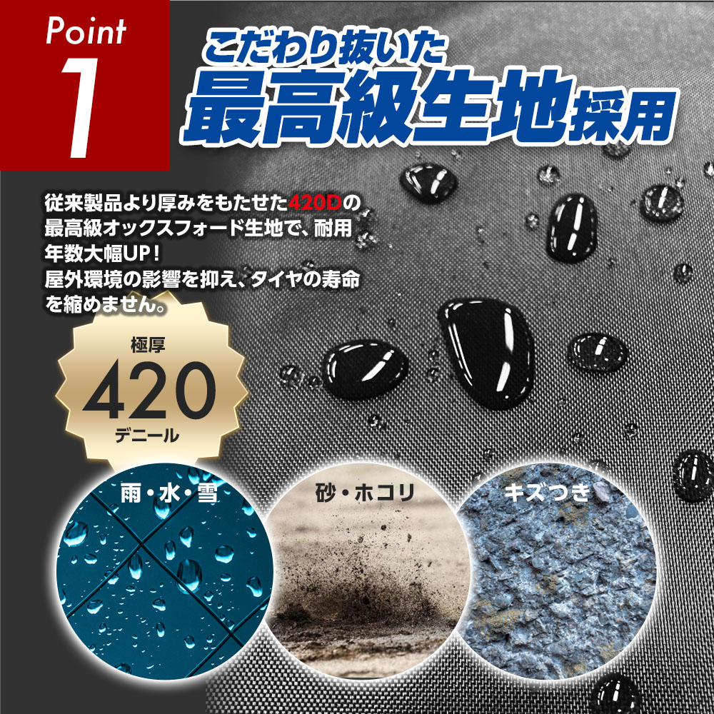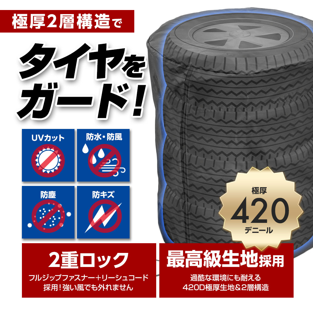 丈夫で耐久性に優れており、雨・雪・紫外線からタイヤを保護します。