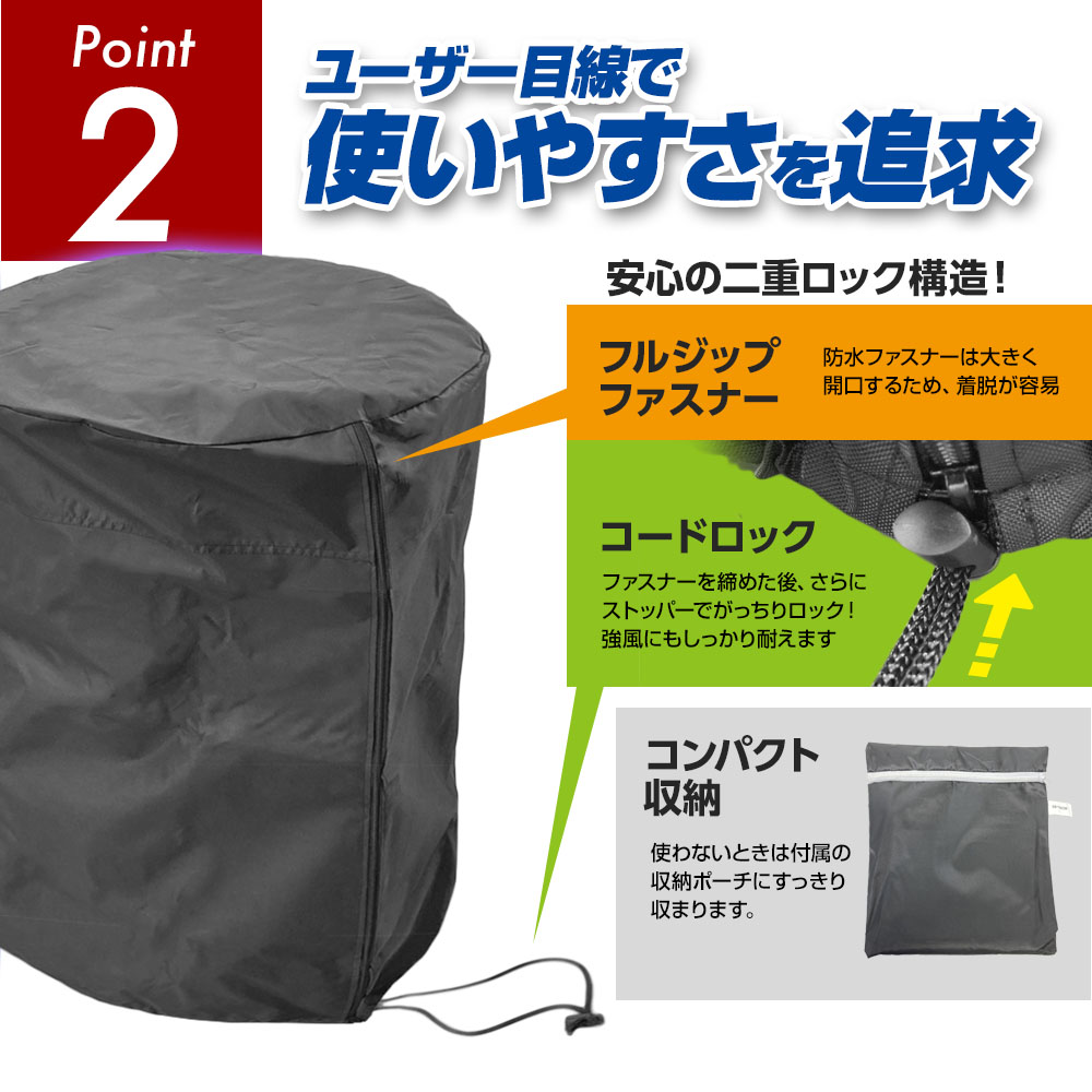 強風の場合でもカバーが吹き飛ばされる心配はありません。