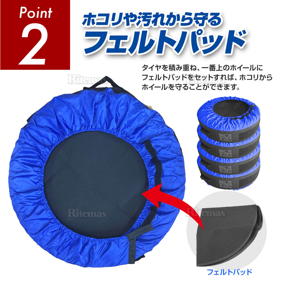 タイヤを積み重ねた際に一番上のホイールに付属のフェルトパッドをセットすることでホコリなどからホイールを守ることができます。