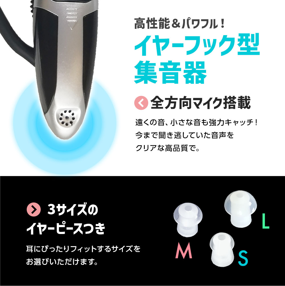 集音器 クリア 高性能 全方向性 マイク 搭載 軽度難聴 集音器 耳穴型 イヤーピース 3サイズ付属 小型 軽量 イヤホン パワフル イヤーズーム