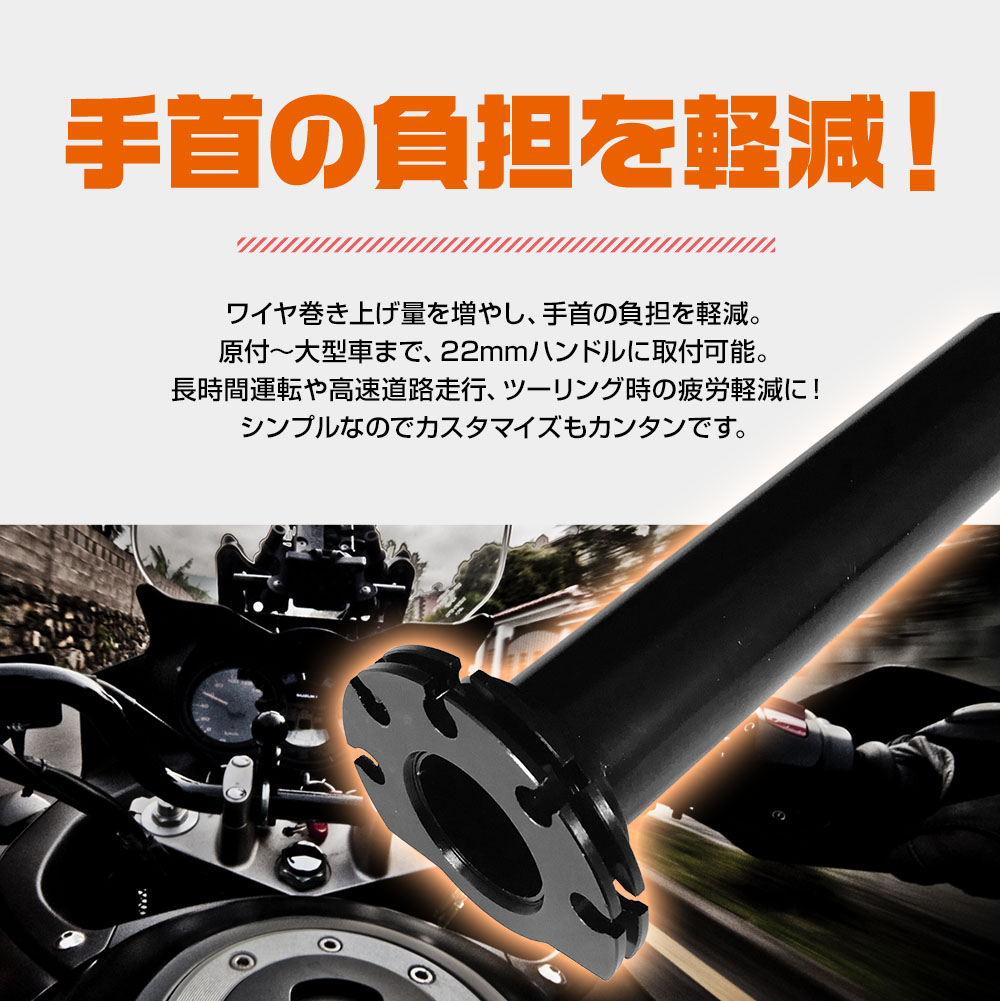 汎用 ハイスロ キット バイク ハイスロットル アクセル グリップ アルミ カスタム 黒 ブラック 原付 大型 普通 疲労軽減 ツーリング