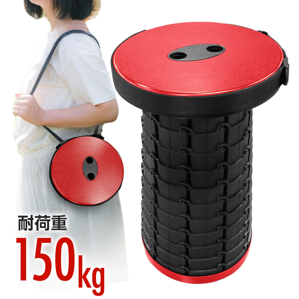 使用する時ただ指を両面の穴にさして開くだけ、縮める時は逆方法に少しひねりを入れながら両端を押すだけで一瞬で収納可能です。ショルダータイプに持ち運ぶ時は、チェアの側に回るロップがあるので肩にかけ持ち運べるから本当に便利です。また重量は1.2kgで軽量です。 頑丈な素材ポリアミドで耐荷重150kgまで対応!