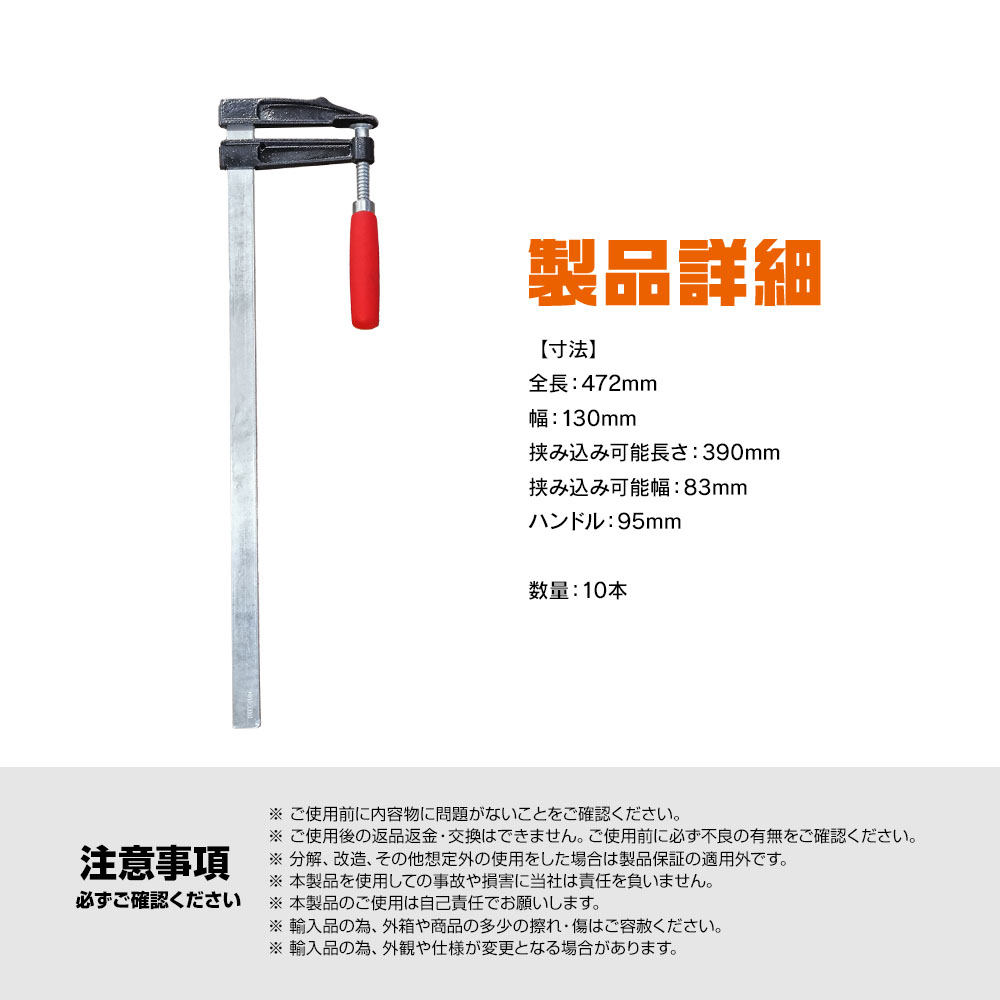 F型クランプ 80mm×400mm 10本セット 強力 固定工具 木材 工作 木工 溶接 作業用 DIY 日曜大工 作業用F型クランプ 工具 C型 L型 固定