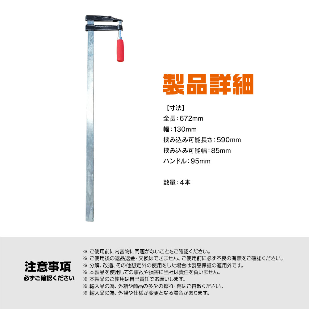 F型クランプ 80mm×600mm 4本セット 強力 固定工具 木材 工作 木工 溶接 作業用 DIY 日曜大工 作業用F型クランプ 工具 C型 L型 固定