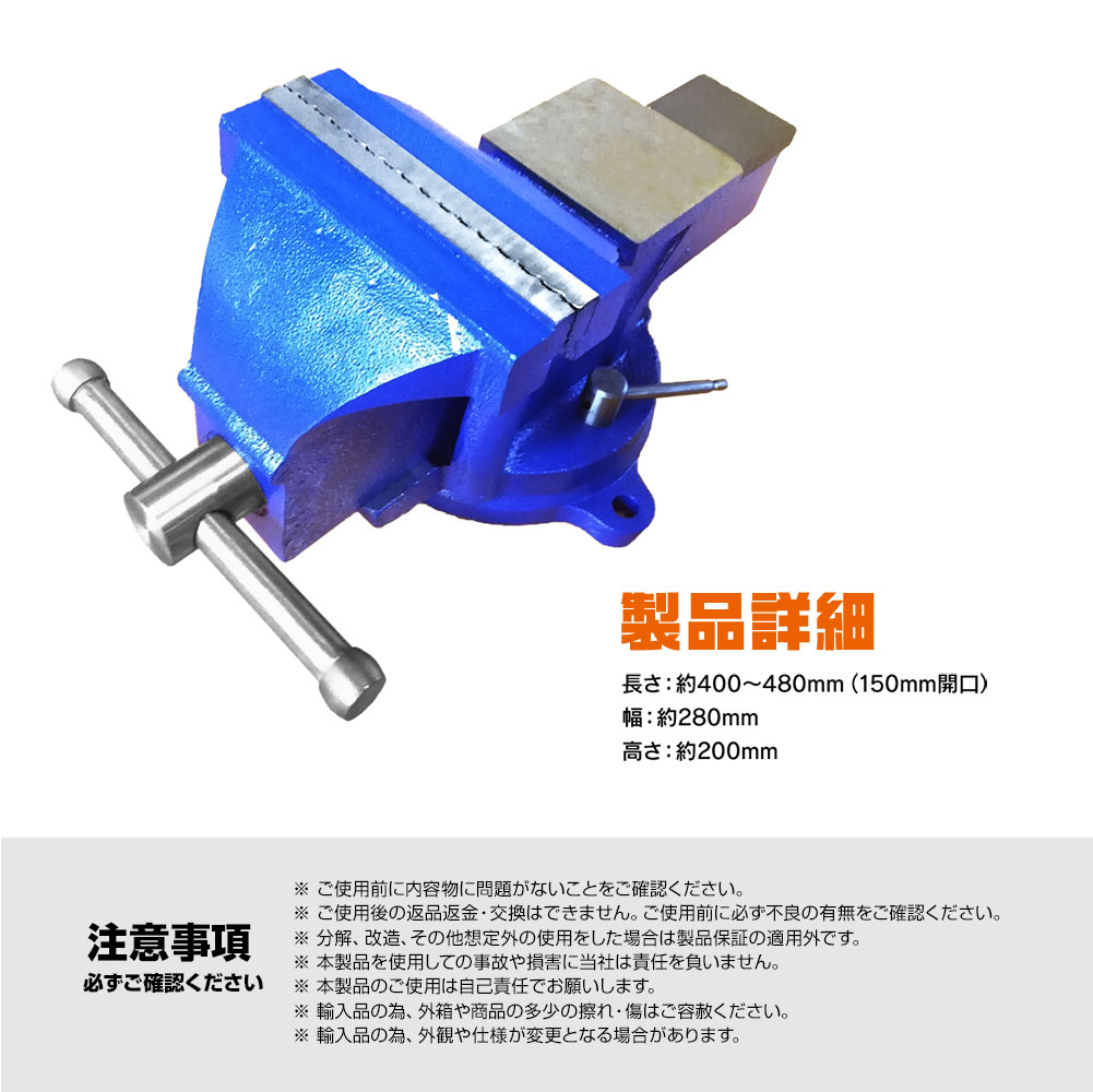 万力 リードバイス 150 mm 6インチ 卓上 回転式 DIY ベンチバイス 作業台 青 固定工具 作業工具 締付工具 整備 修理 鈑金 テーブルバイス