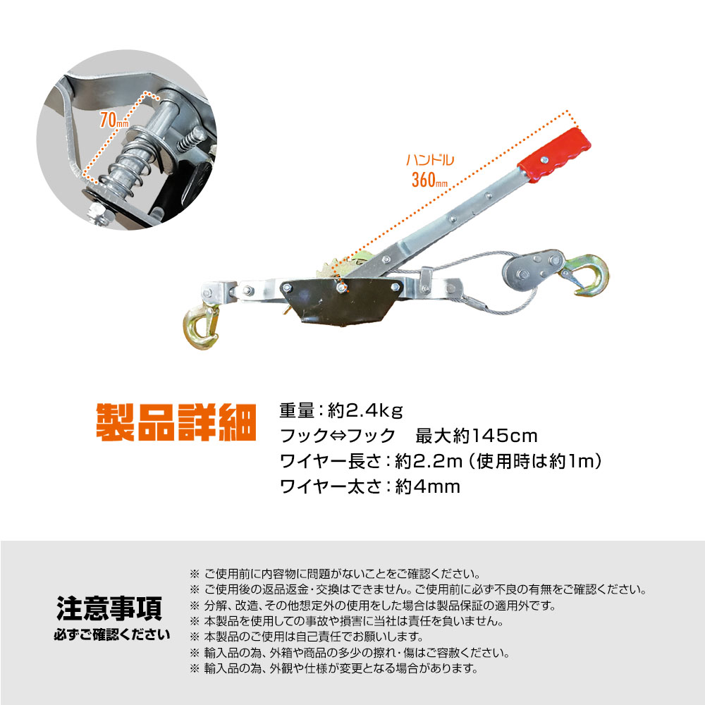 2トン ローププーラー 集材 伐倒 ハンド ウィンチ 木起機プラー手動けん引2.2m チルホール荷締機ホイストMaasdamマーベル