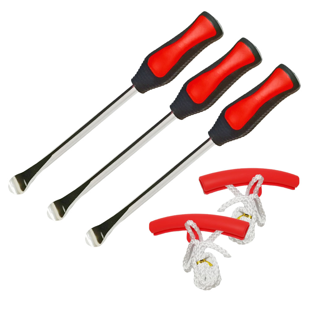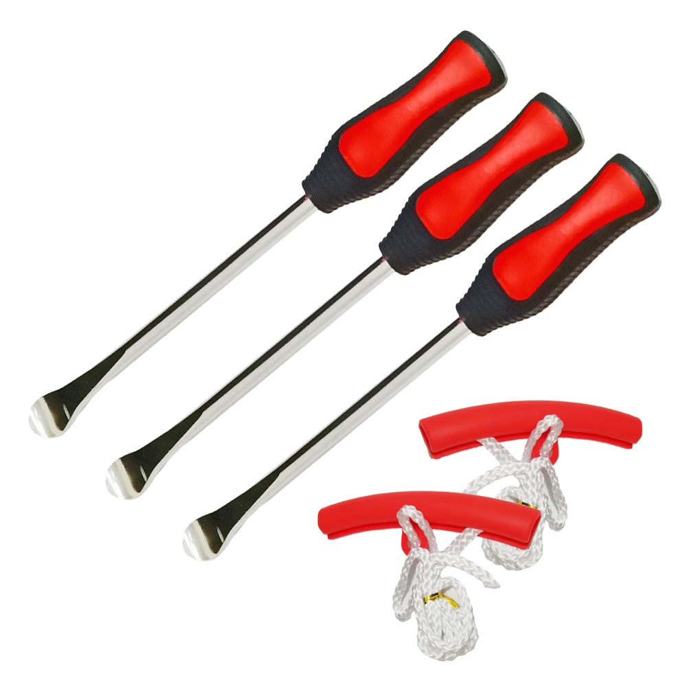 タイヤレバーツールスプーン3個とタイヤアイアンツールプロテクター2個のセット。