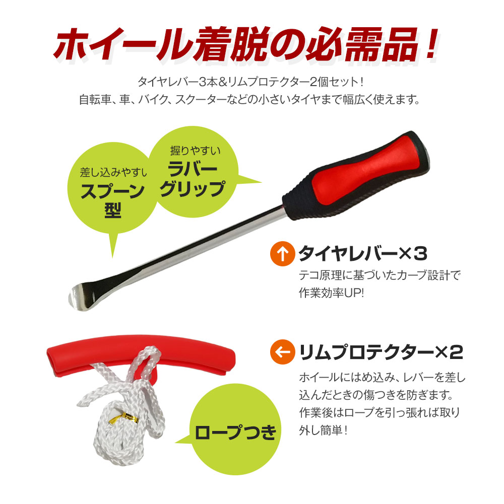 セット内容:タイヤレバー×3本、リムプロテクター×2個