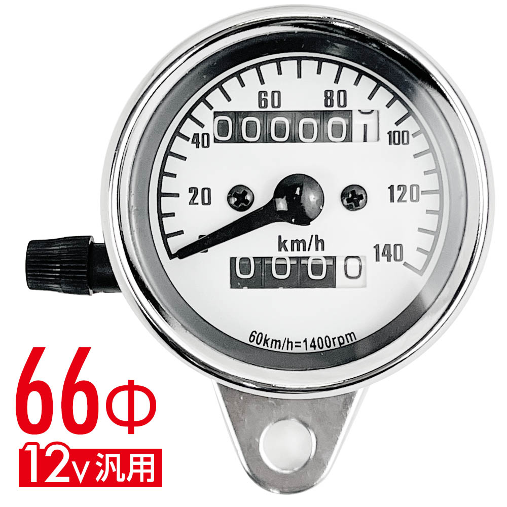 スピードメーター 機械式 12V 140km/h バイク用 汎用 メーター バイクメーター バイク オートバイ 走行距離計 走行距離 オドメーター 白