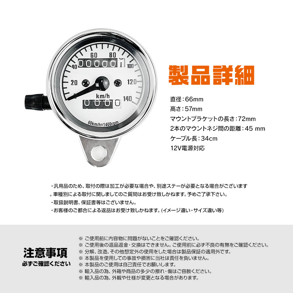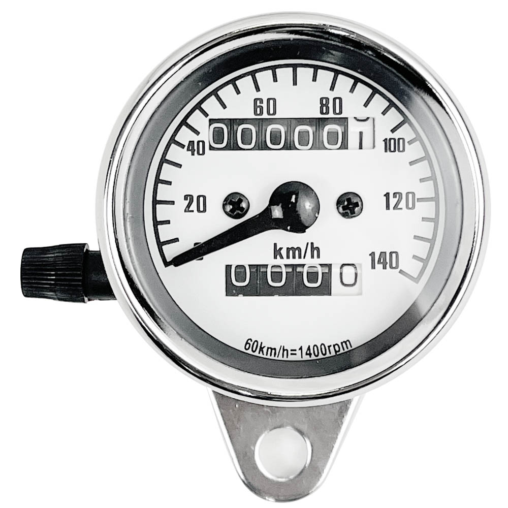 • スピードメーター 機械式 12V 140km/h バイク用 汎用 メーター バイクメーター バイク オートバイ 走行距離計 走行距離 オドメーター 白