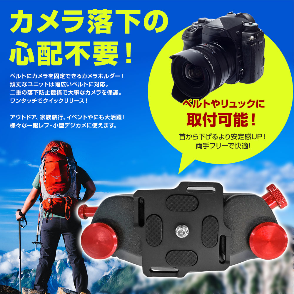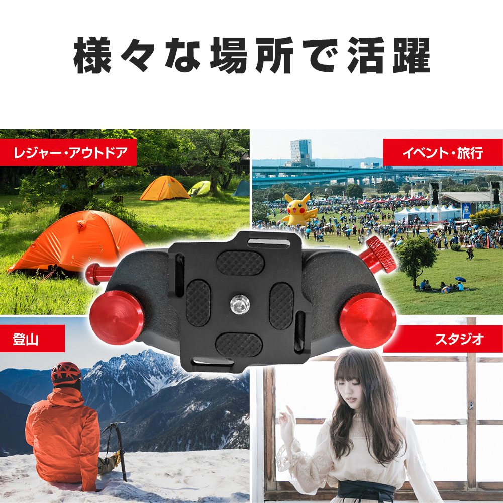 ベルトやバッグに装着し、首や肩に負担をかけずに持ち運ぶ事ができます。