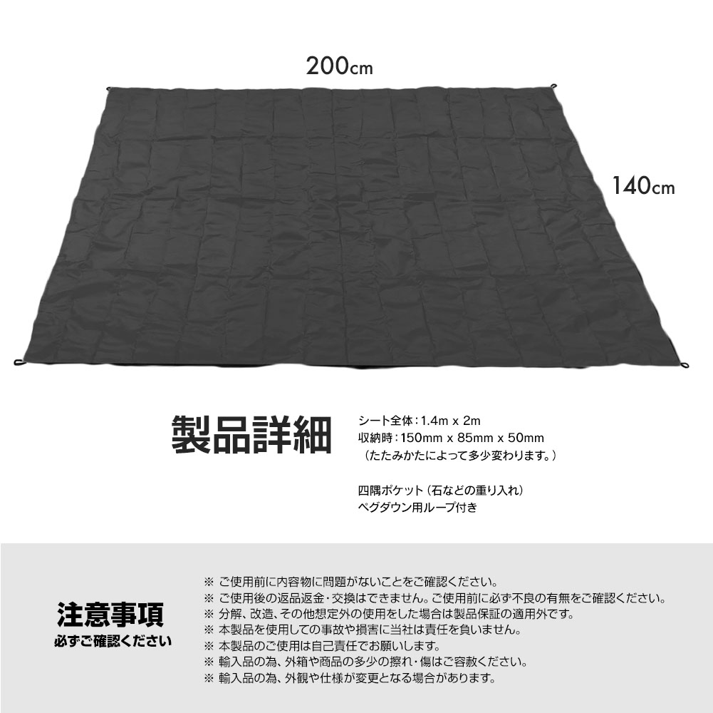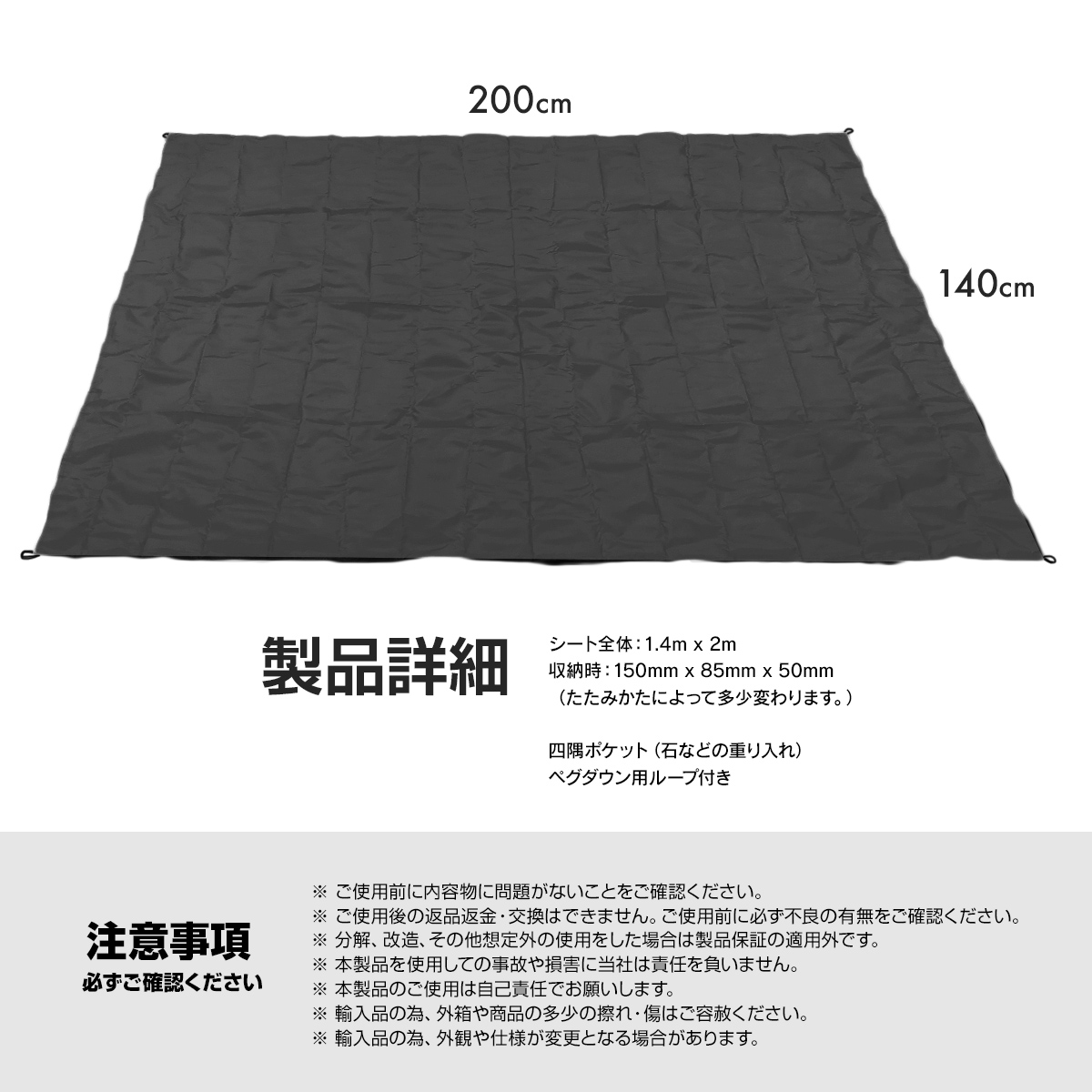 レジャーシート 1~2人用 200 x 140 cm 軽い 防水 収納袋付き お弁当 弁当 子ども マット シート 遠足 運動会 花見 ピクニック 黒 ブラック