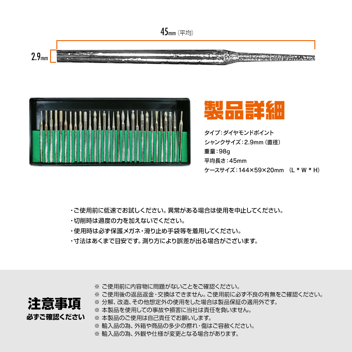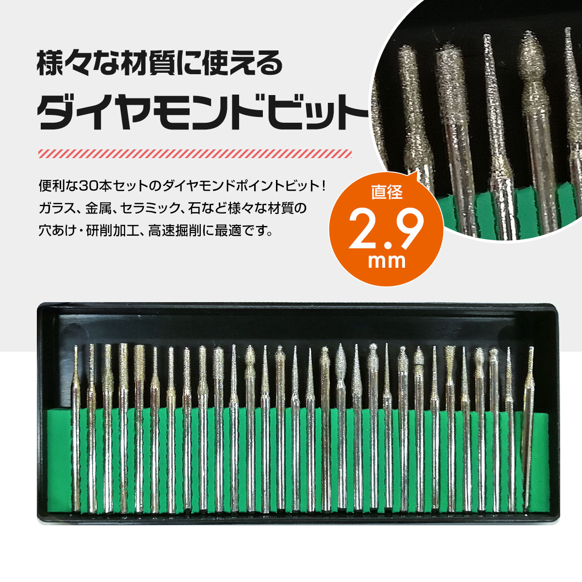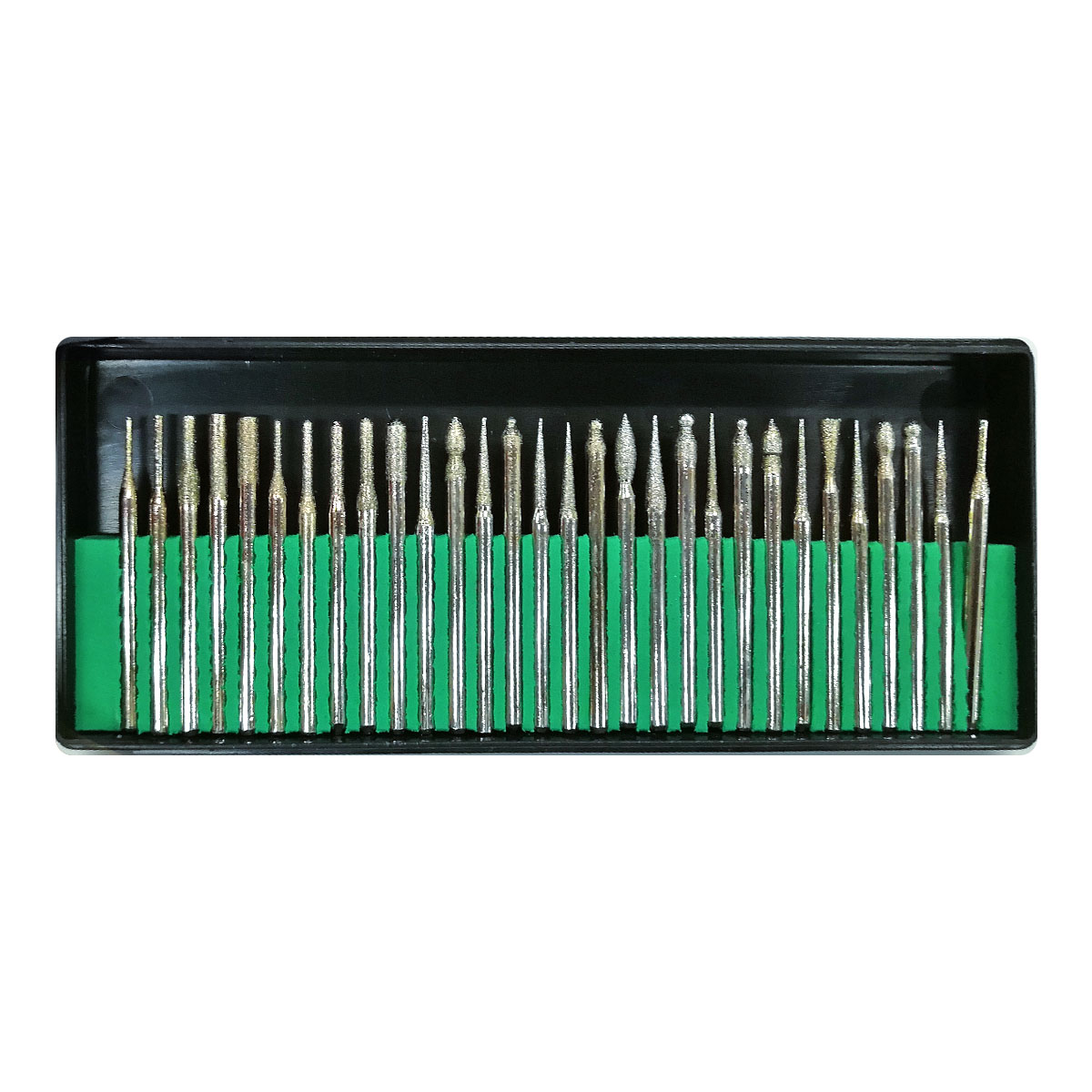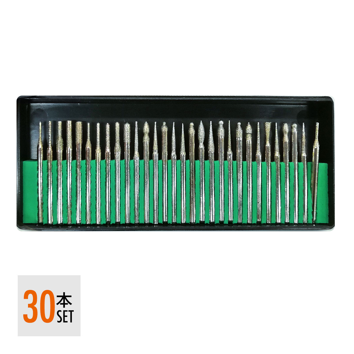 ルータービット 30本入り ダイヤモンド研削ビットセット メタル製 シルバートーン 2.9mmシャンク径