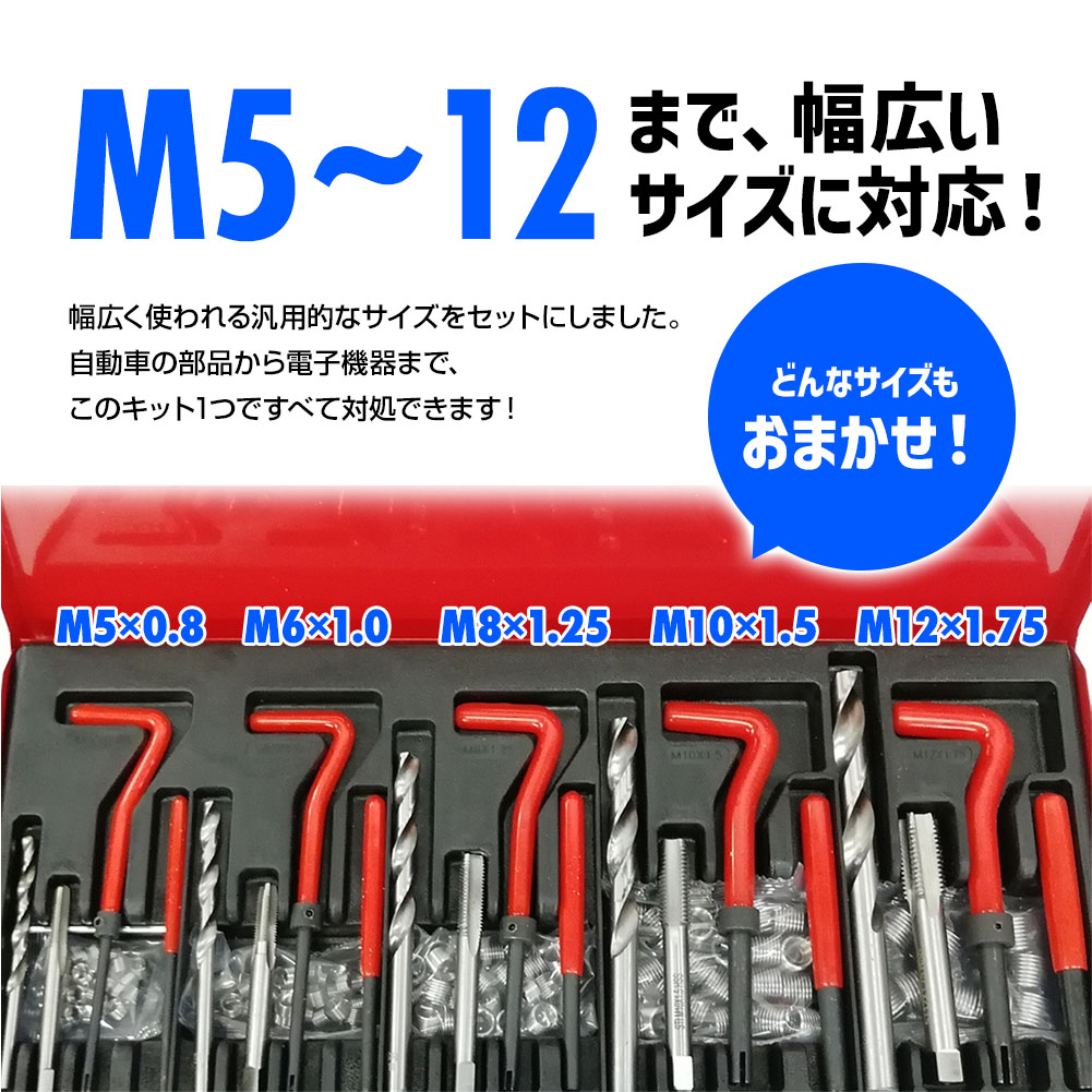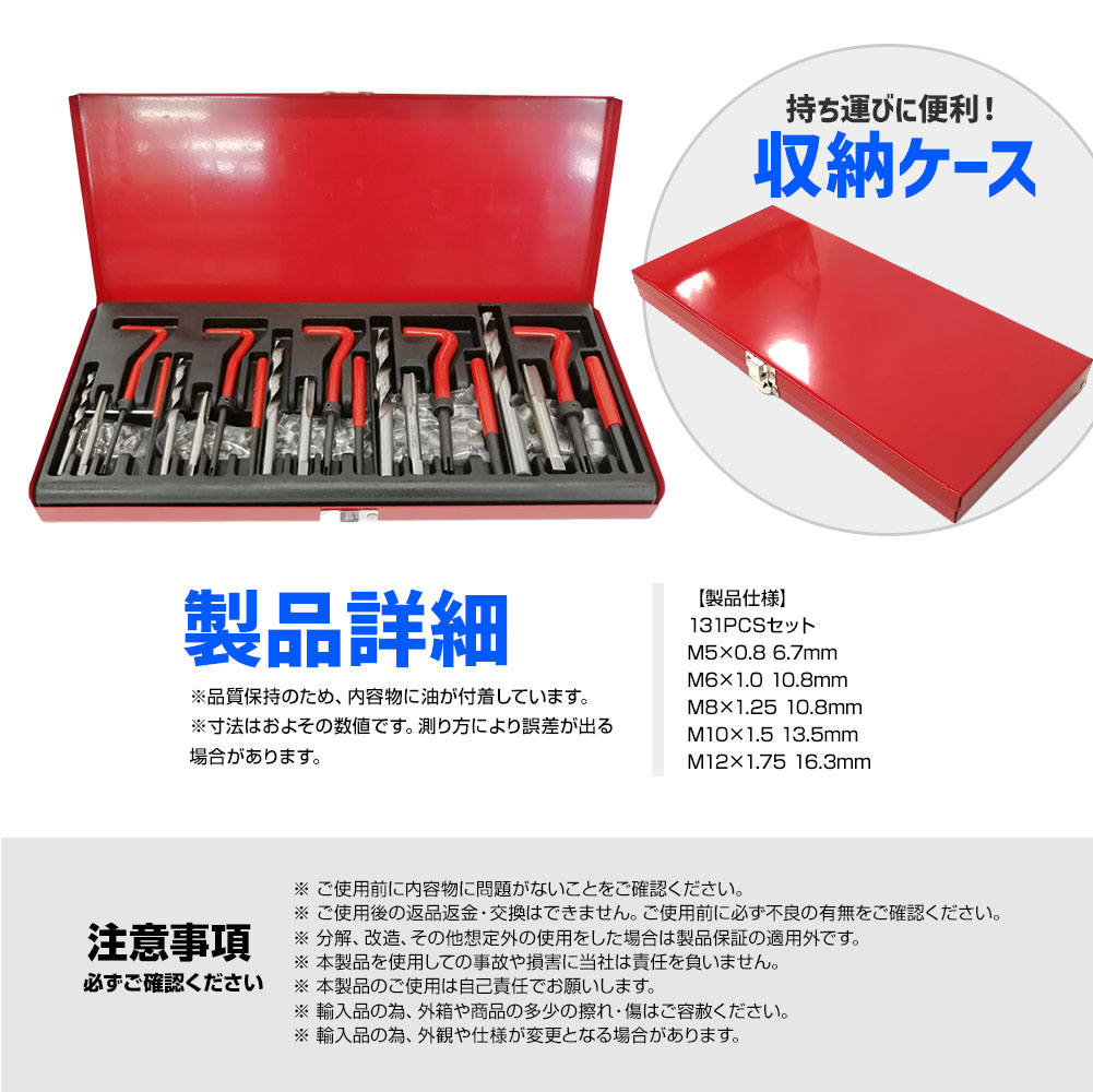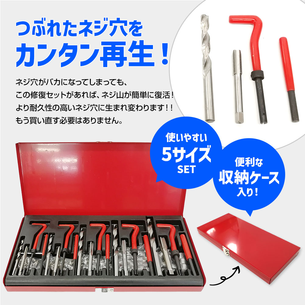 ネジ穴修正キット 131pcs リコイルキット ねじ山 ネジ山 ねじ ネジ リコイルヘリサートキット リペアキット 修復キット