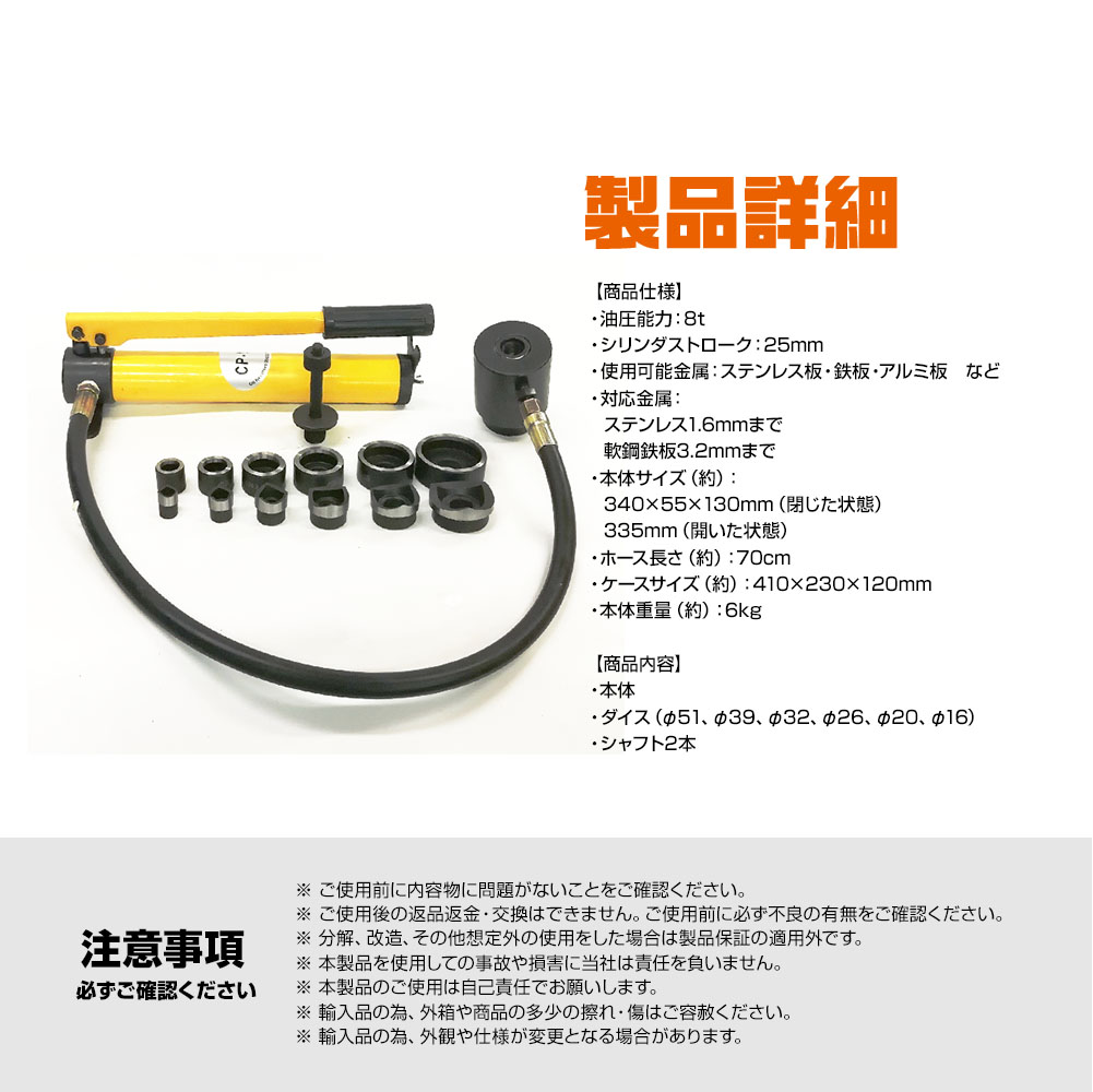 油圧の力で素早くかつきれいに穴をあけることができます。