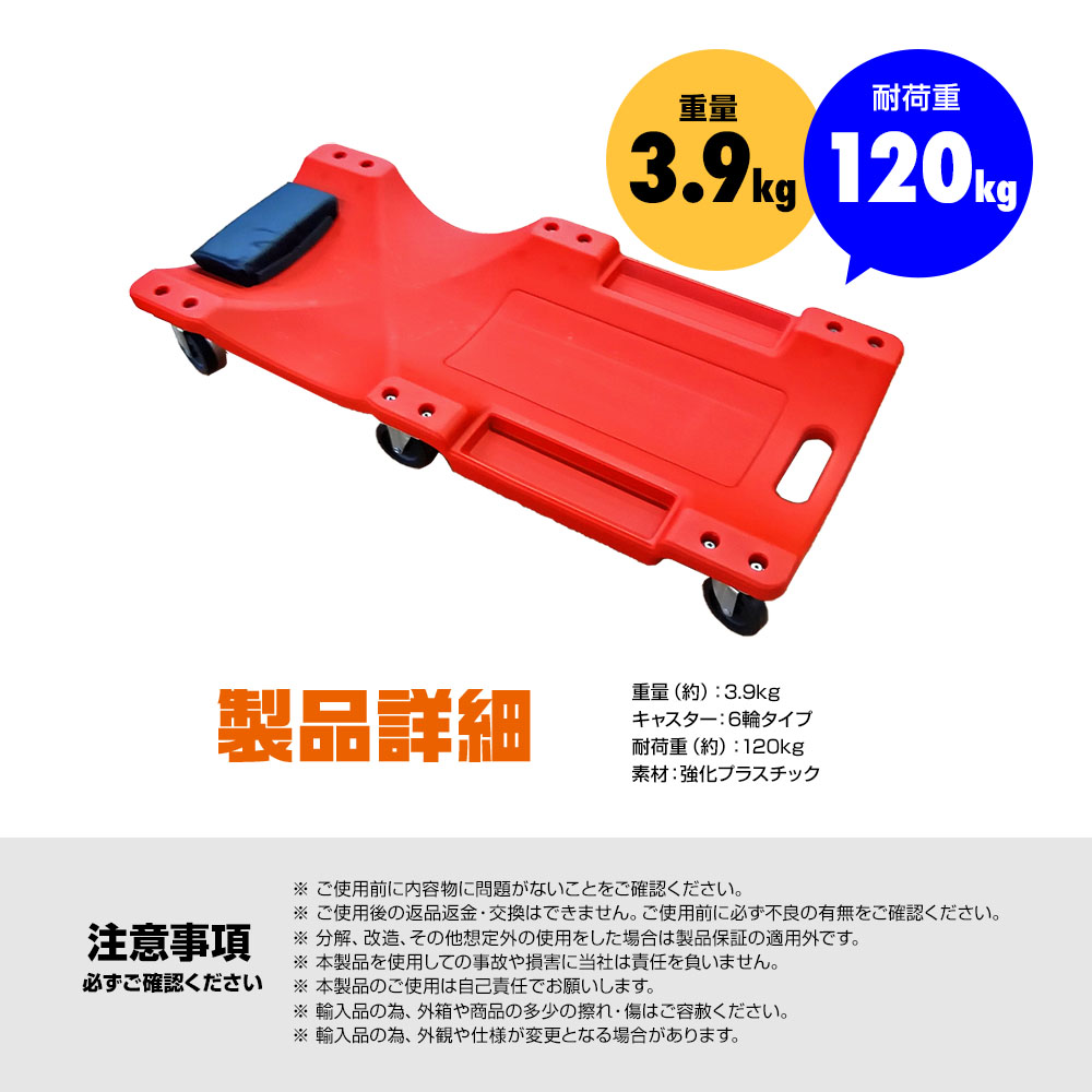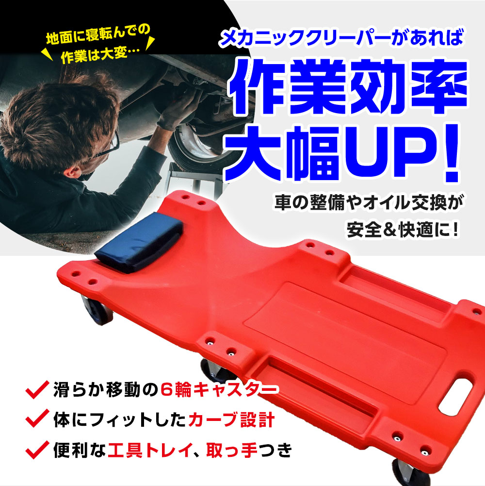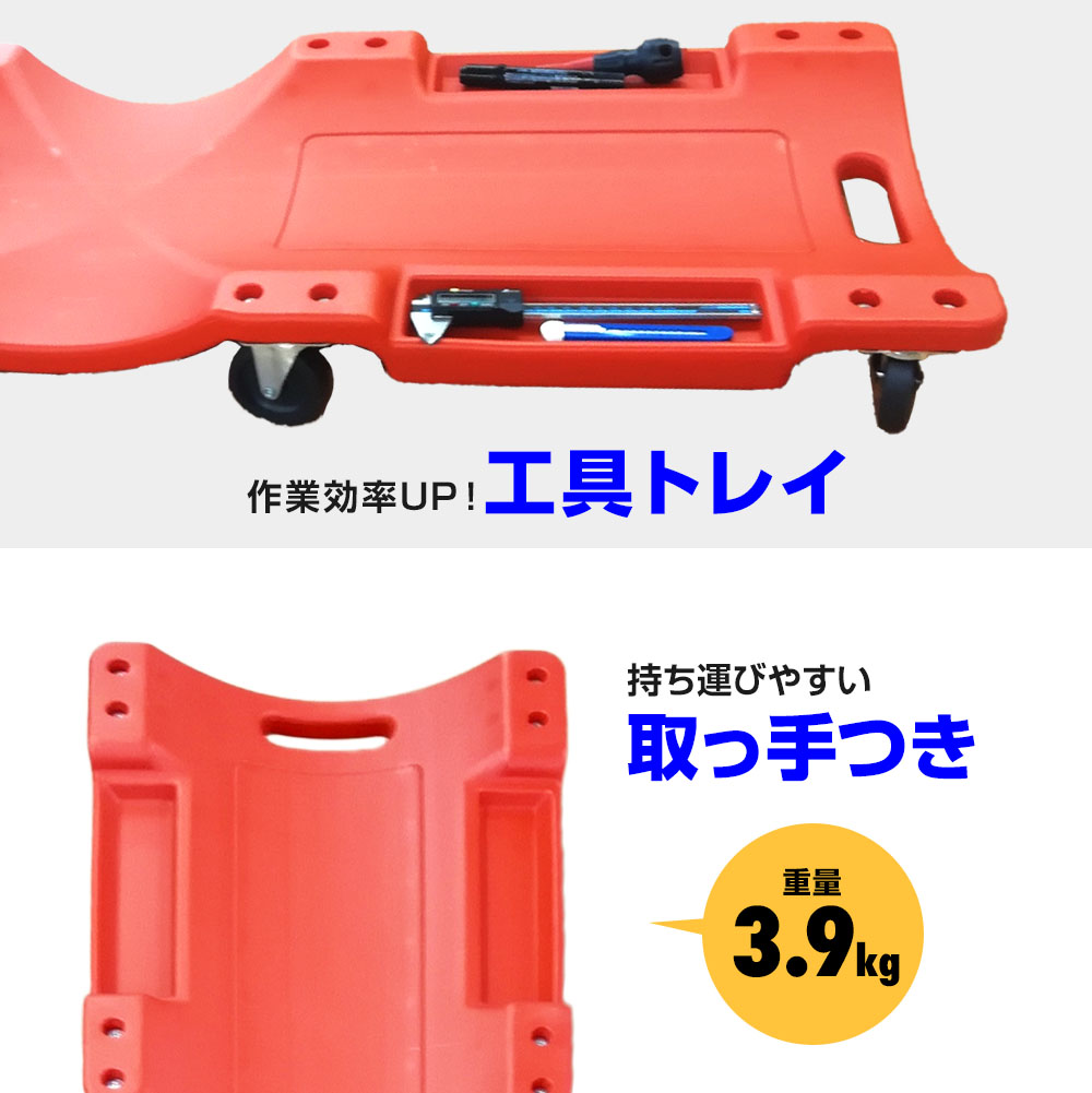 メカニッククリーパー サイドポケット付き 耐荷重120kg 寝板 低床クリーパー 自動車メンテ作業用 工具専用トレイ 軽量 6輪