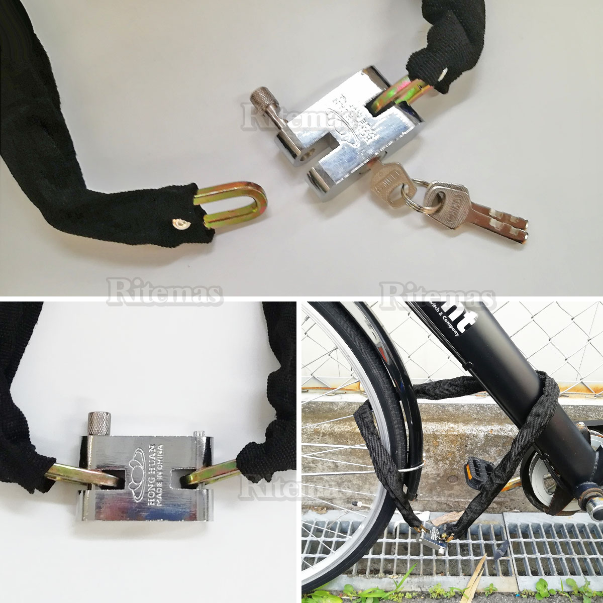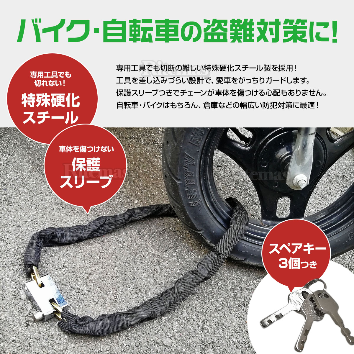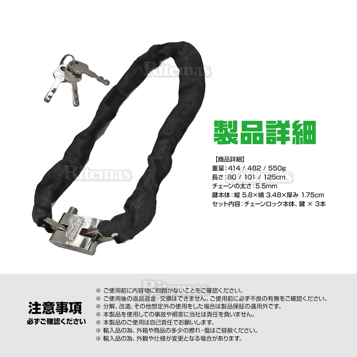 バイク 自転車 チェーンロック 125cm 軽量 コンパクト仕様 スペアキー3本 オートバイ ロック ロングタイプ 頑丈 鍵付き 防犯 対策 盗難防止