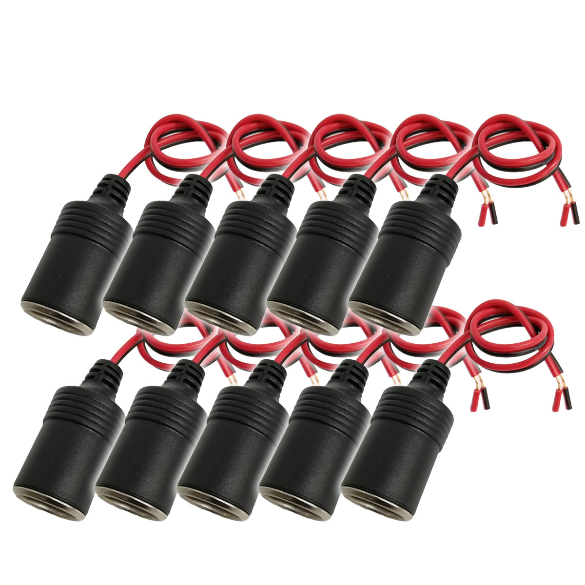 • シガーソケット メス 10個 電源 増設 延長ケーブル コネクタ シガーライター ACC電源 ドラレコ レーダー探知機 ETC 12V 24V 対応