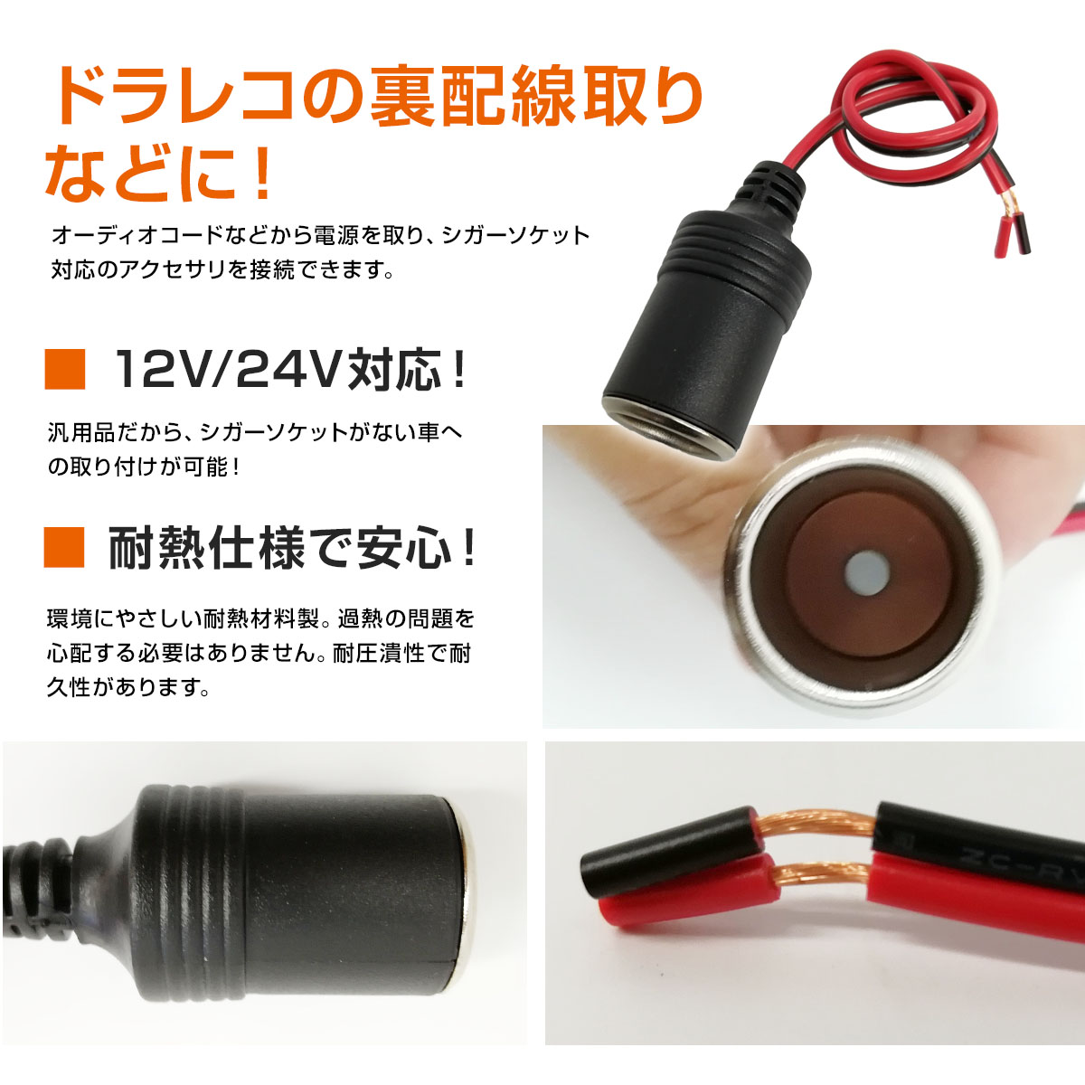 シガーソケット メス 10個 電源 増設 延長ケーブル コネクタ シガーライター ACC電源 ドラレコ レーダー探知機 ETC 12V 24V 対応