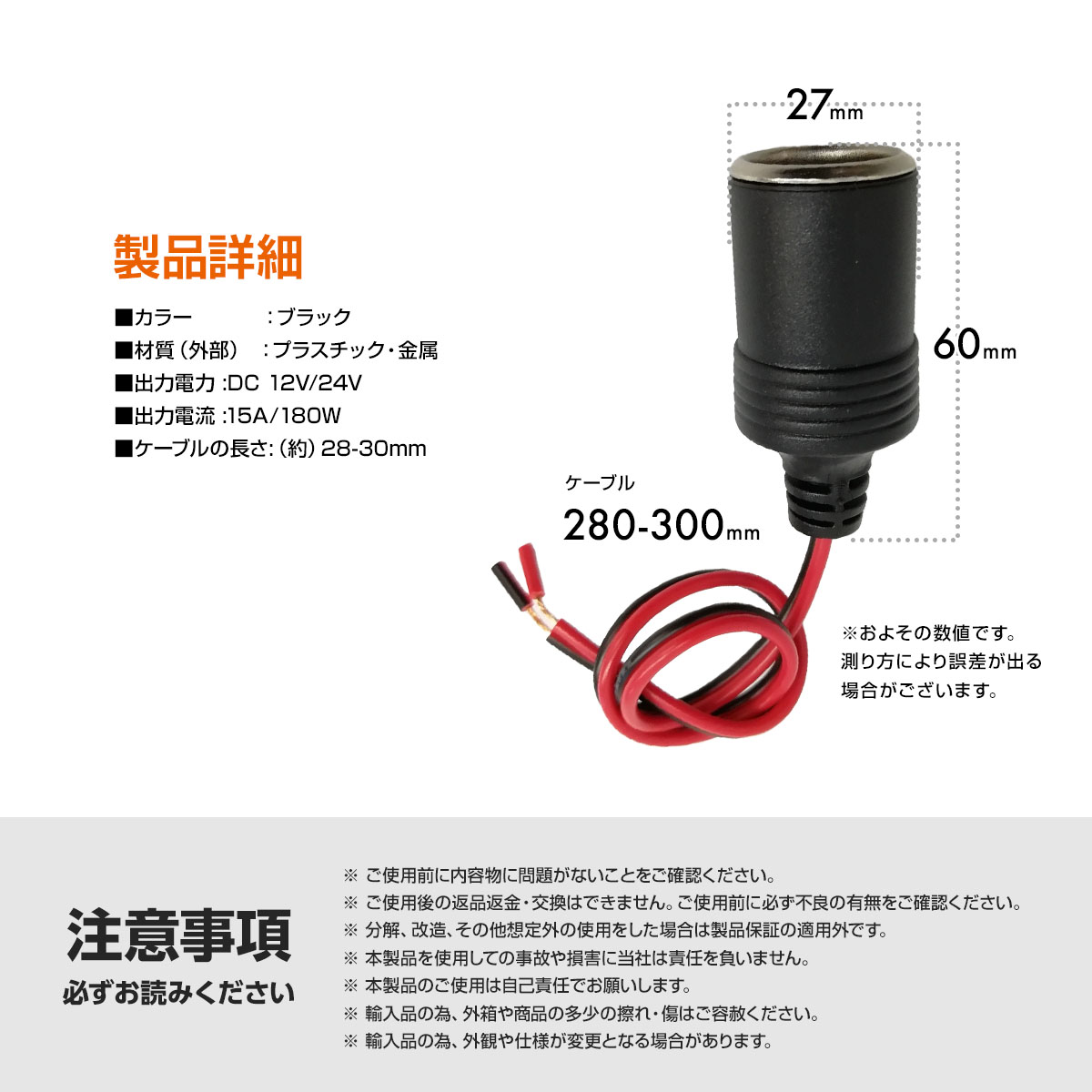 シガーソケット メスソケット 12V 電源ケーブル 30cm
