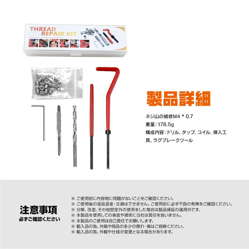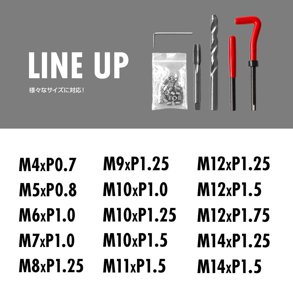 構成内容:ドリル、タップ、コイル、挿入工具、ラグブレークツール